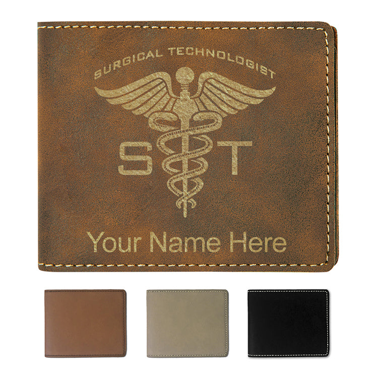Faux Leather Bi-Fold Wallet, ST Surgical Technologist, Personalized Engraving Included