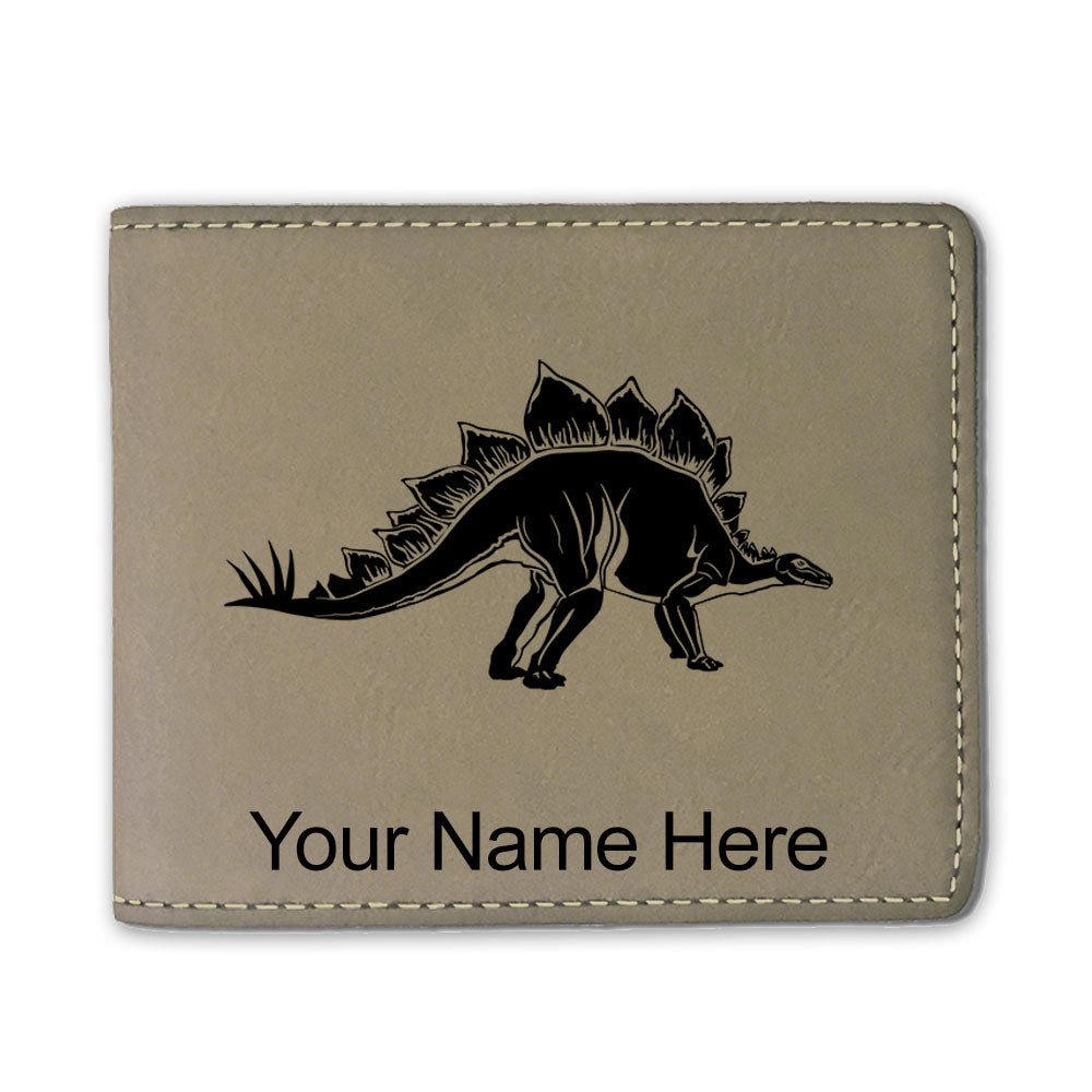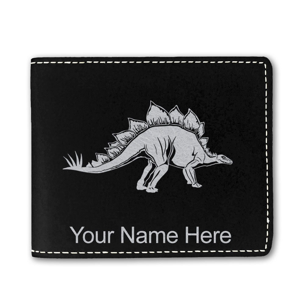 Faux Leather Bi-Fold Wallet, Stegosaurus Dinosaur, Personalized Engraving Included
