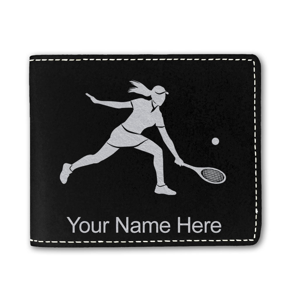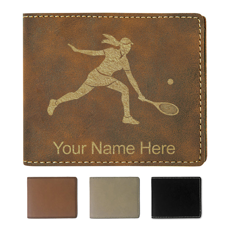 Faux Leather Bi-Fold Wallet, Tennis Player Woman, Personalized Engraving Included