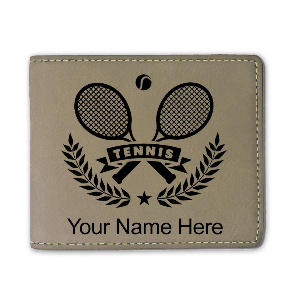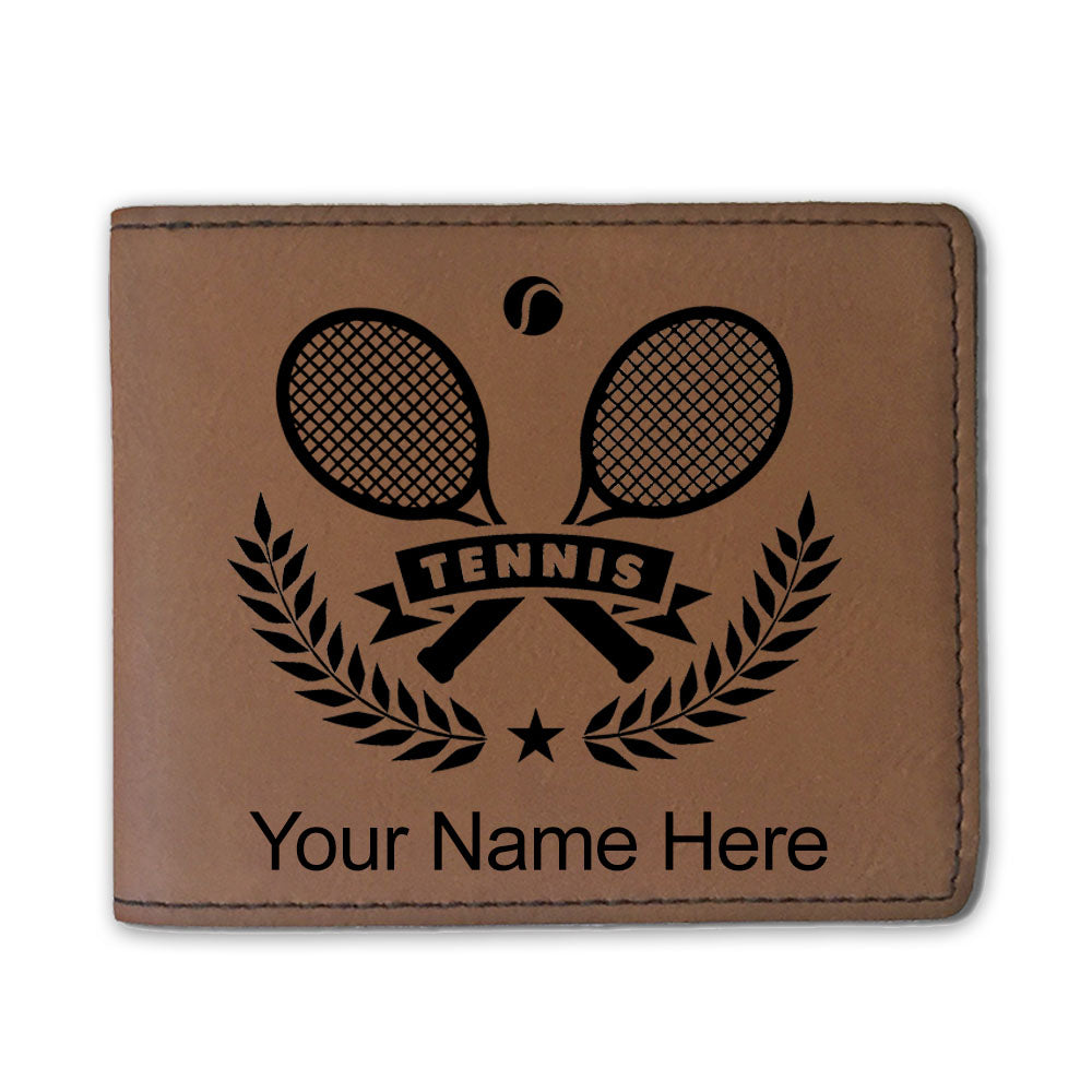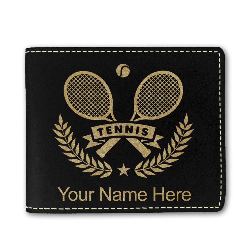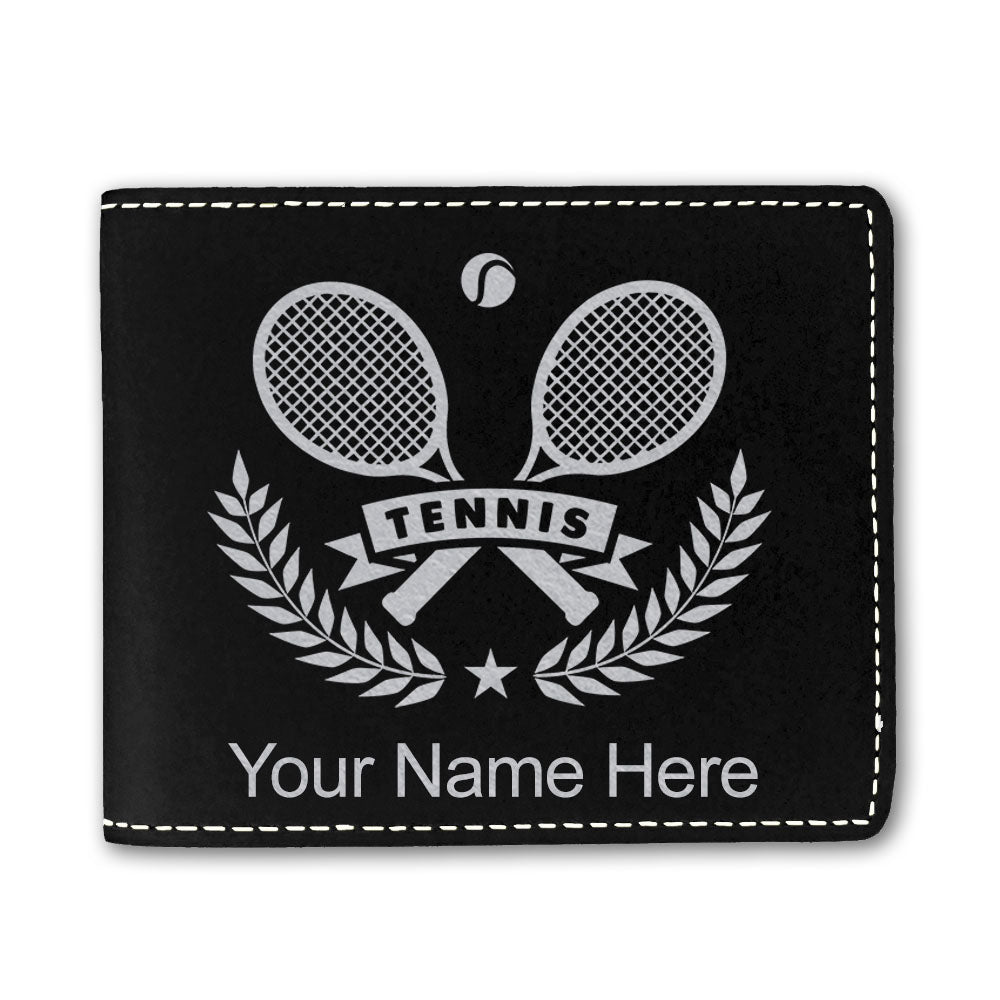 Faux Leather Bi-Fold Wallet, Tennis Rackets, Personalized Engraving Included