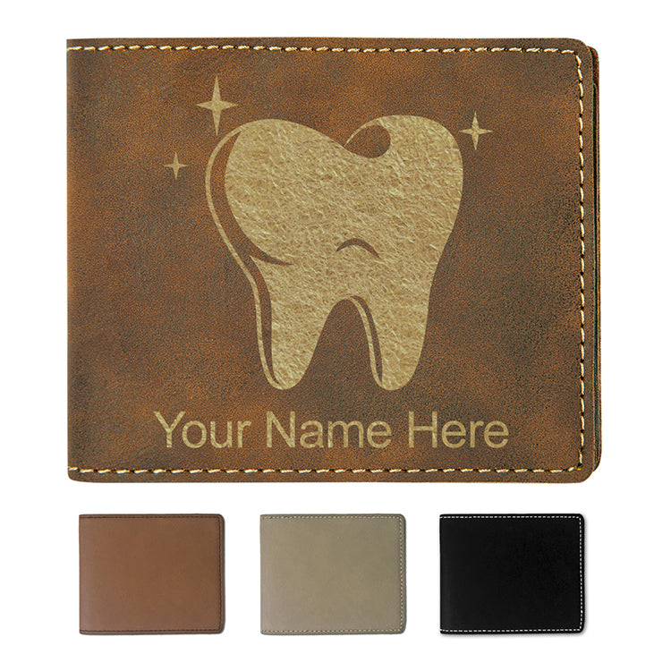 Faux Leather Bi-Fold Wallet, Tooth, Personalized Engraving Included