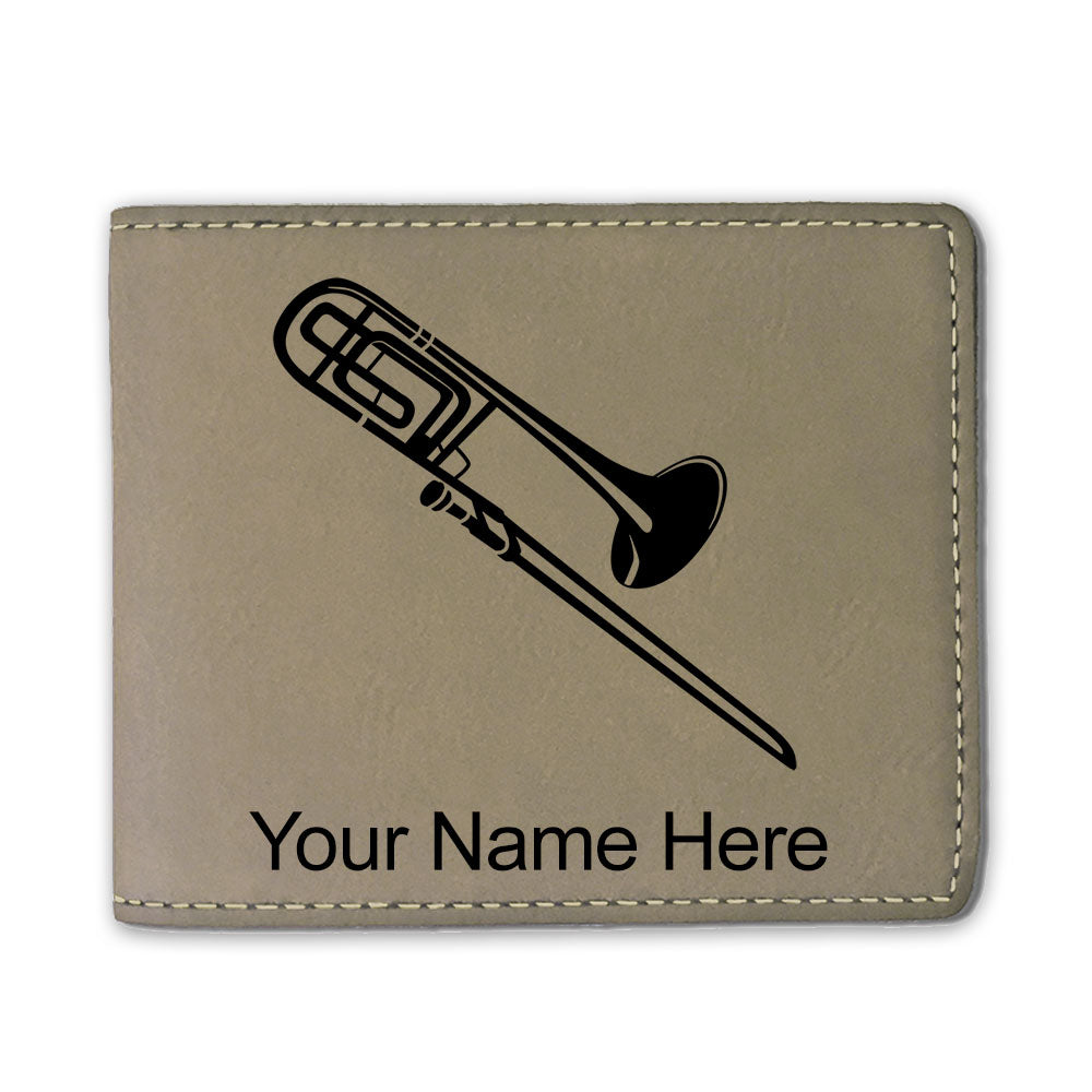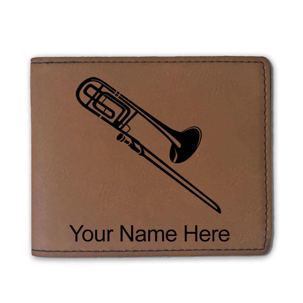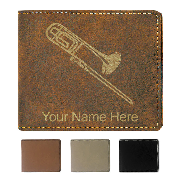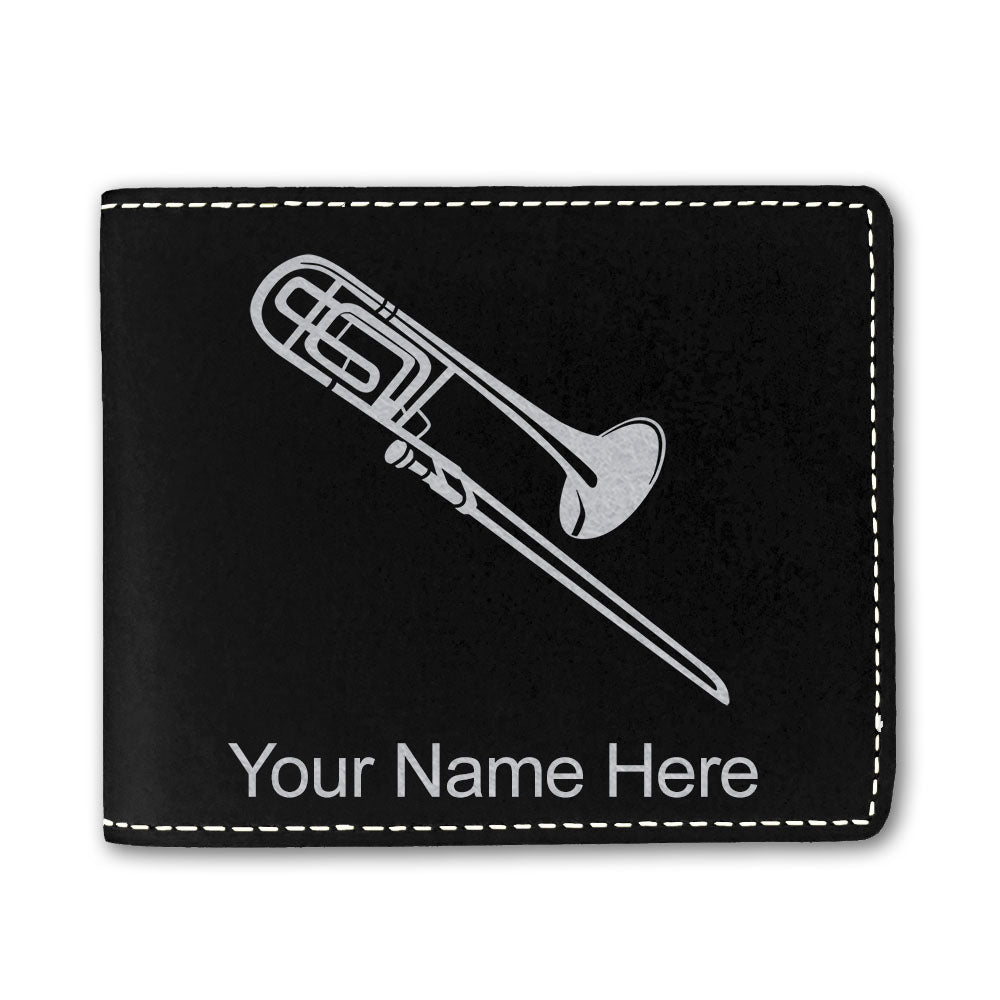 Faux Leather Bi-Fold Wallet, Trombone, Personalized Engraving Included