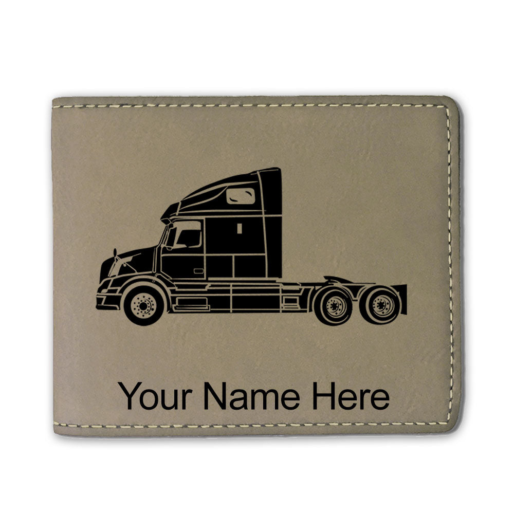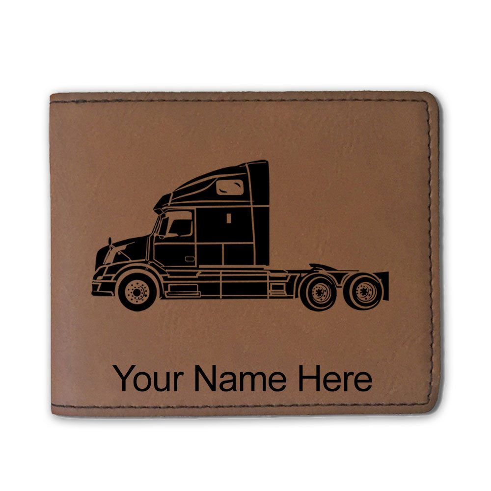Faux Leather Bi-Fold Wallet, Truck Cab, Personalized Engraving Included