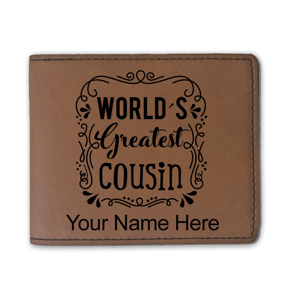 Faux Leather Bi-Fold Wallet, World's Greatest Cousin, Personalized Engraving Included