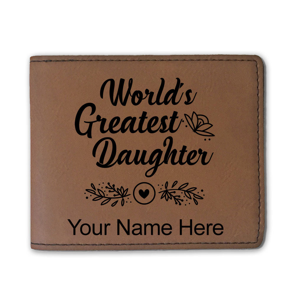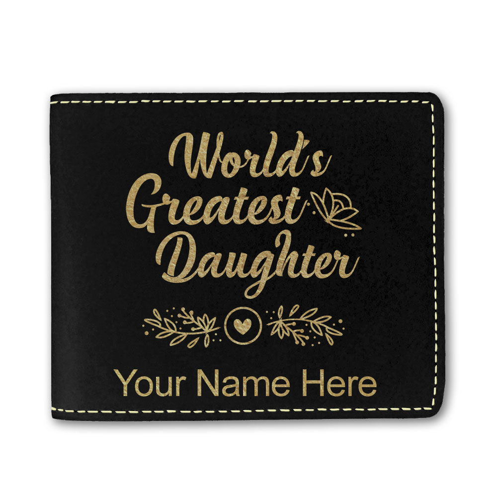 Faux Leather Bi-Fold Wallet, World's Greatest Daughter, Personalized Engraving Included