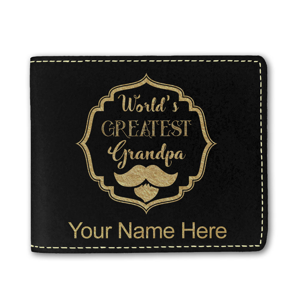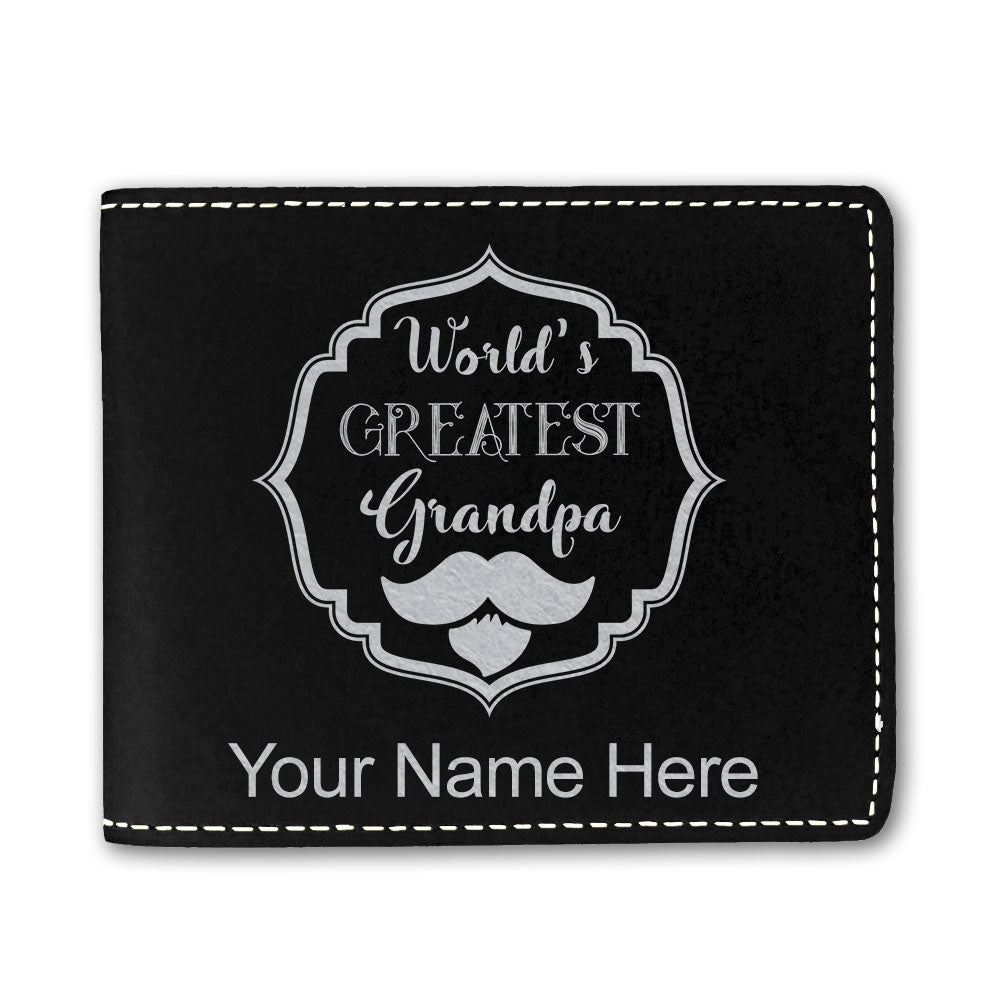 Faux Leather Bi-Fold Wallet, World's Greatest Grandpa, Personalized Engraving Included