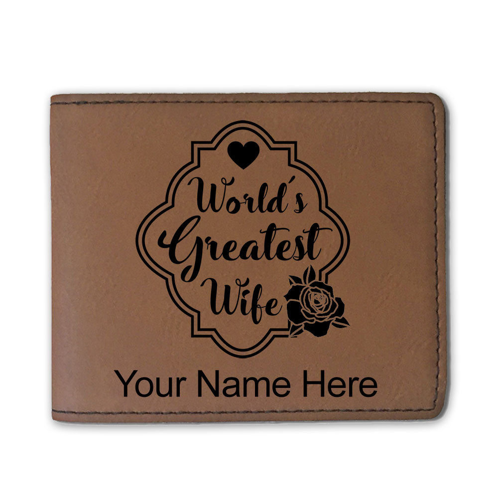 Faux Leather Bi-Fold Wallet, World's Greatest Wife, Personalized Engraving Included