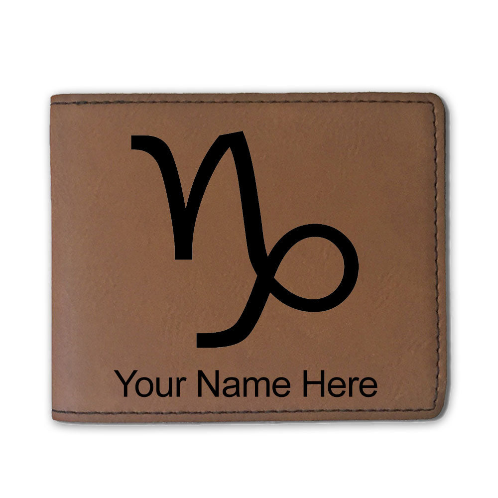 Faux Leather Bi-Fold Wallet, Zodiac Sign Capricorn, Personalized Engraving Included