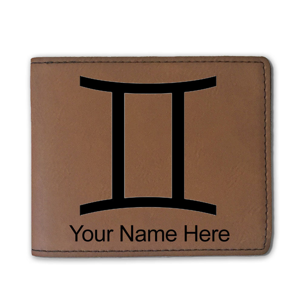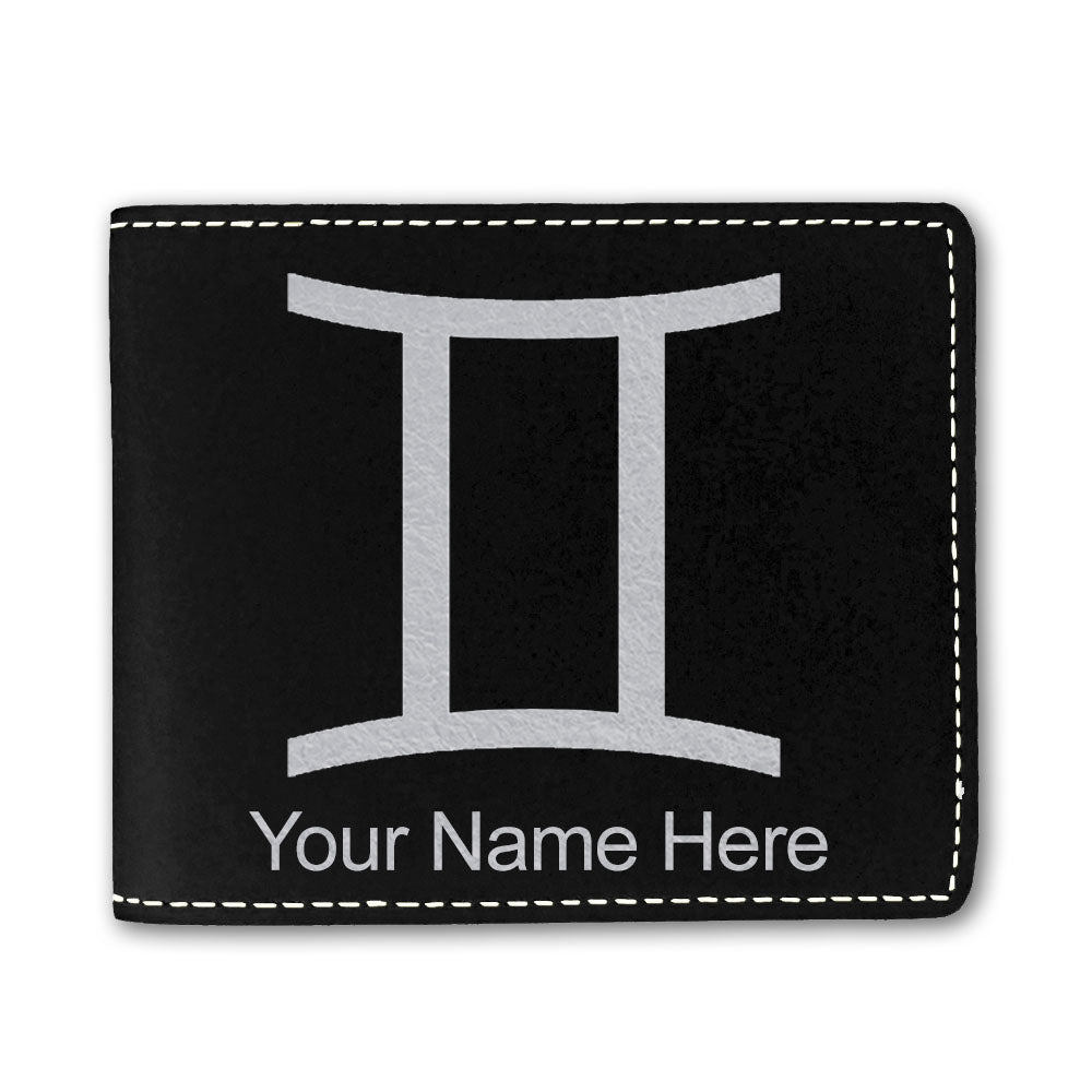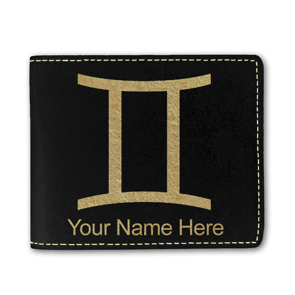 Faux Leather Bi-Fold Wallet, Zodiac Sign Gemini, Personalized Engraving Included