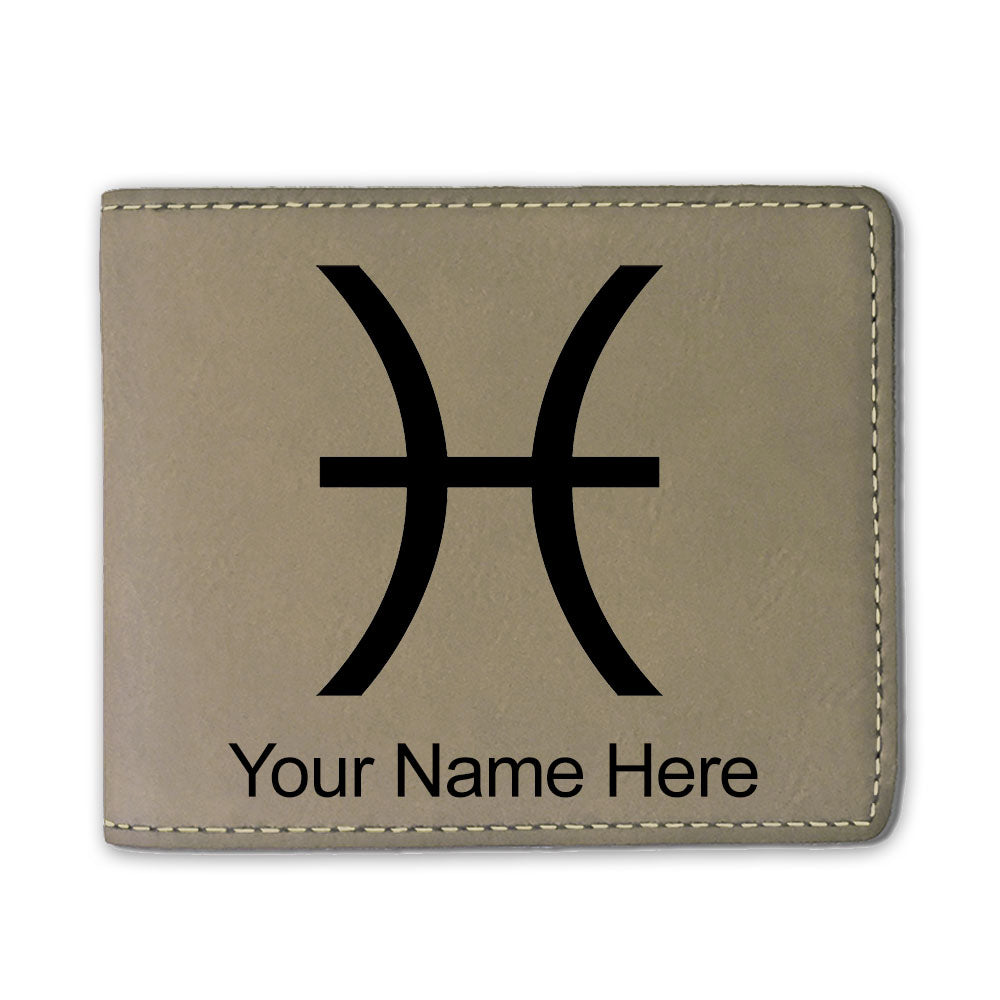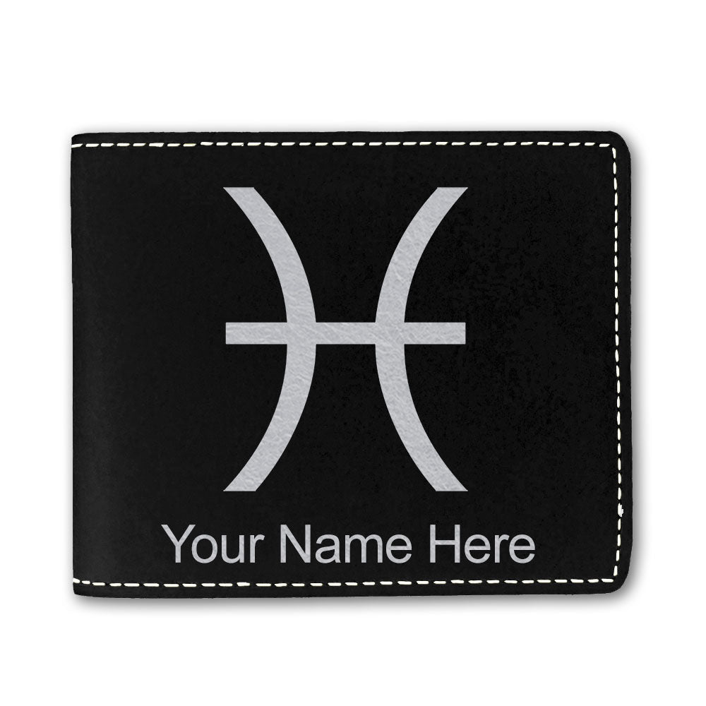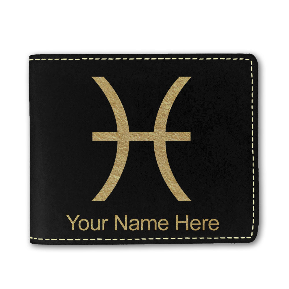 Faux Leather Bi-Fold Wallet, Zodiac Sign Pisces, Personalized Engraving Included