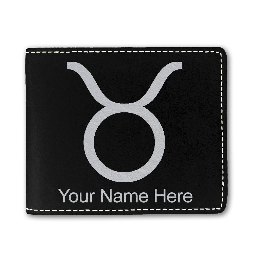 Faux Leather Bi-Fold Wallet, Zodiac Sign Taurus, Personalized Engraving Included