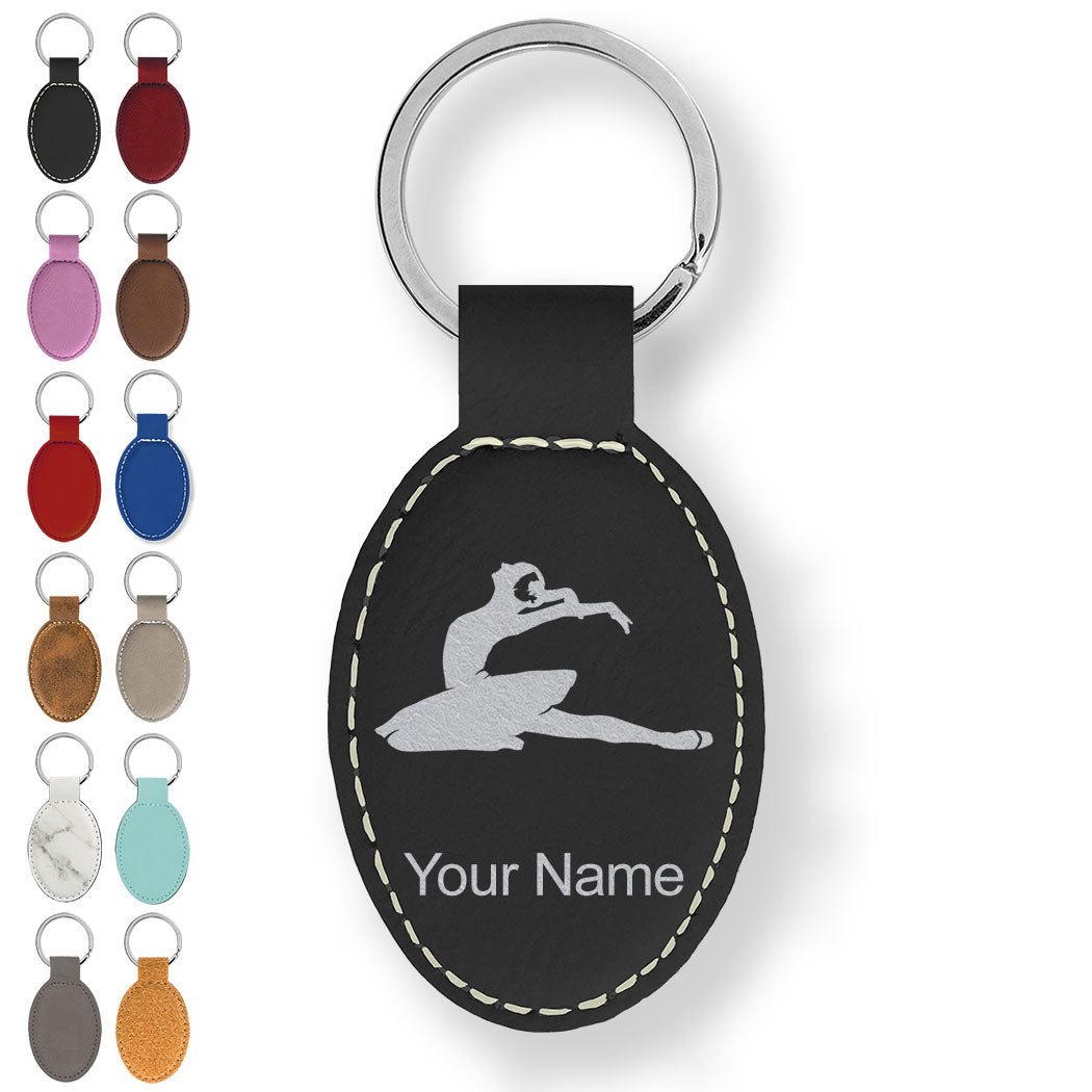 Faux Leather Oval Keychain, Dancer, Personalized Engraving Included