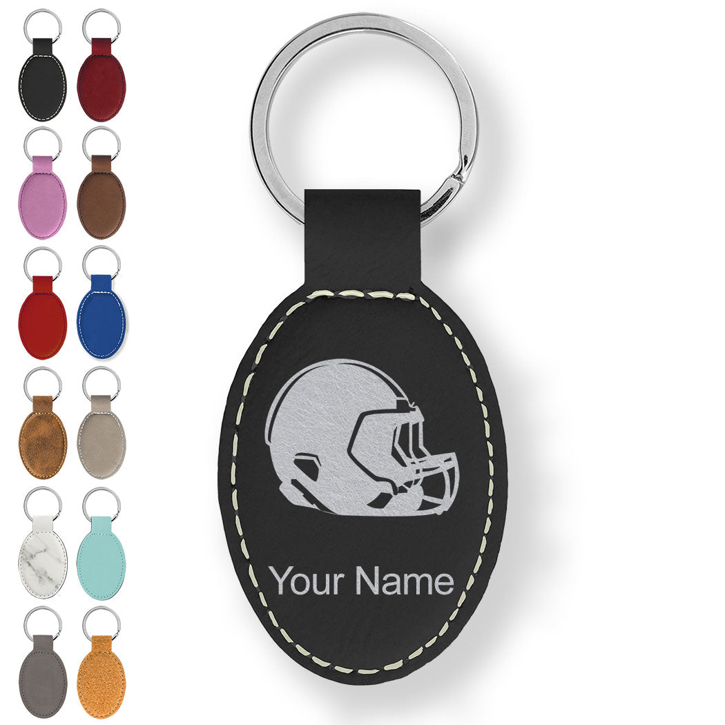 Faux Leather Oval Keychain, Football Helmet, Personalized Engraving Included