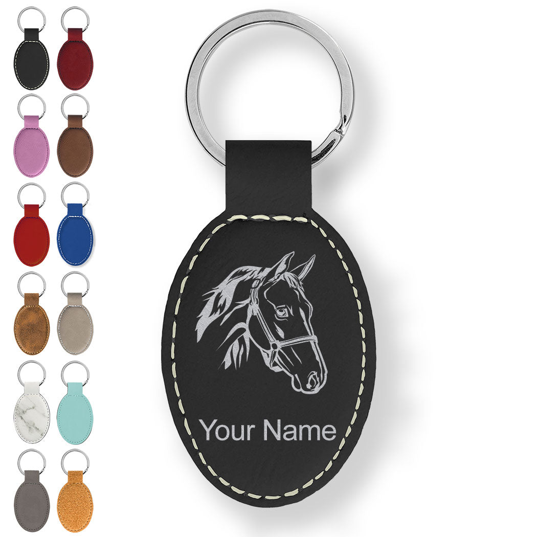 Faux Leather Oval Keychain, Horse Head 2, Personalized Engraving Included