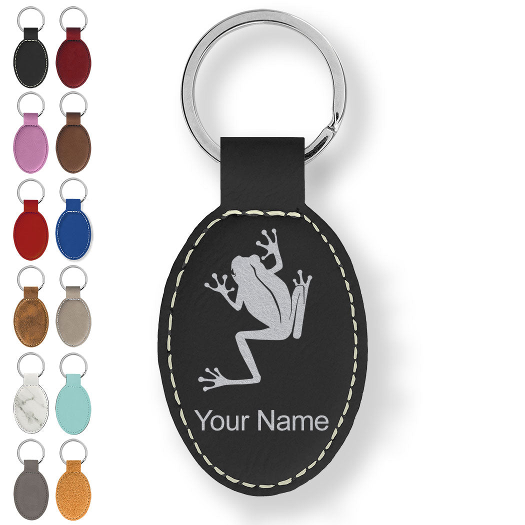 Faux Leather Oval Keychain, Tree Frog, Personalized Engraving Included