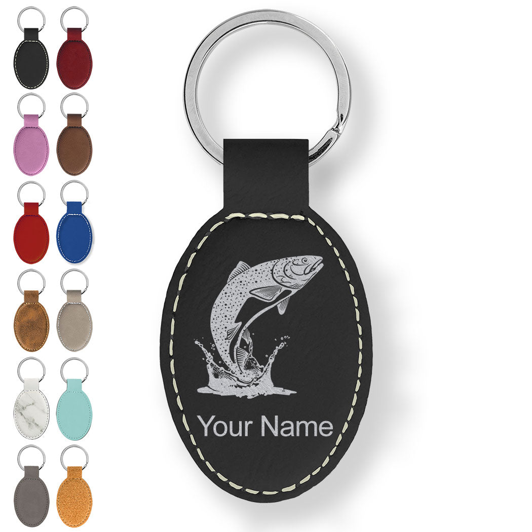 Faux Leather Oval Keychain, Trout Fish, Personalized Engraving Included