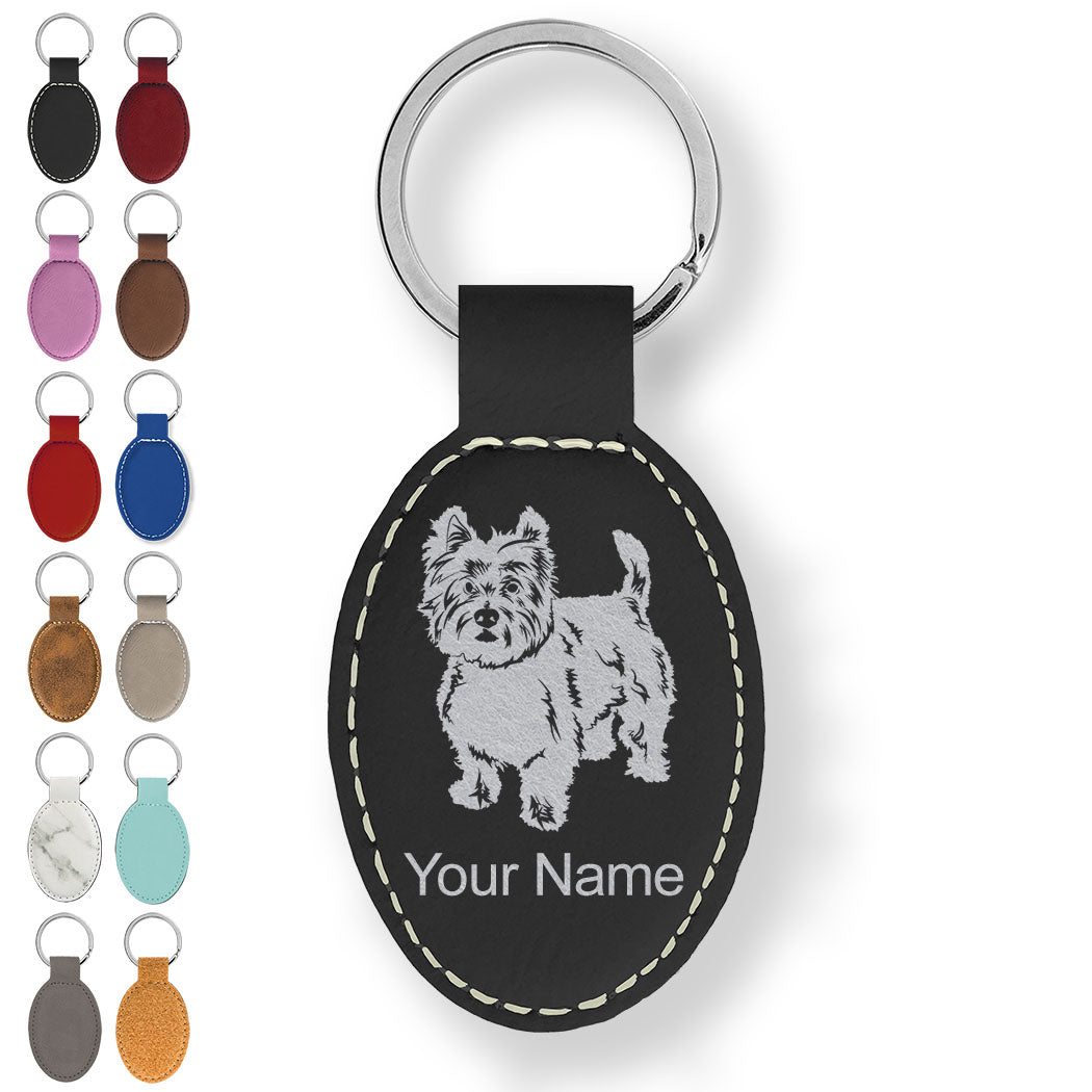 Faux Leather Oval Keychain, West Highland Terrier Dog, Personalized Engraving Included