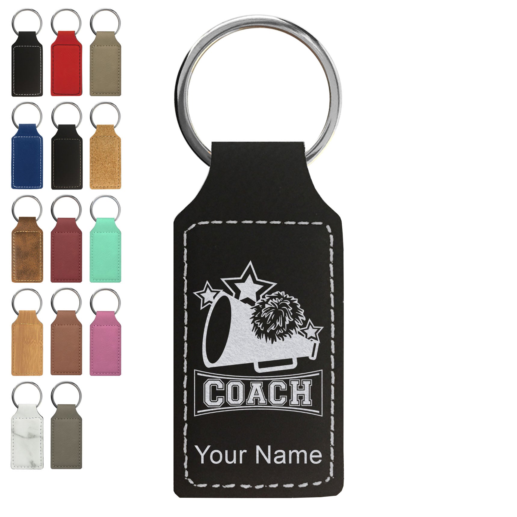 Faux Leather Rectangle Keychain, Cheerleading Coach, Personalized Engraving Included