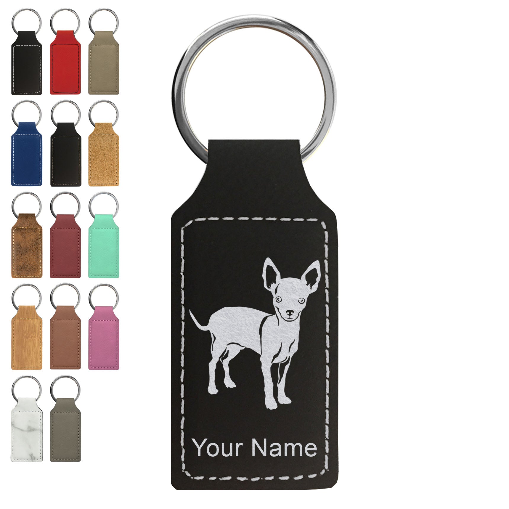 Faux Leather Rectangle Keychain, Chihuahua Dog, Personalized Engraving Included