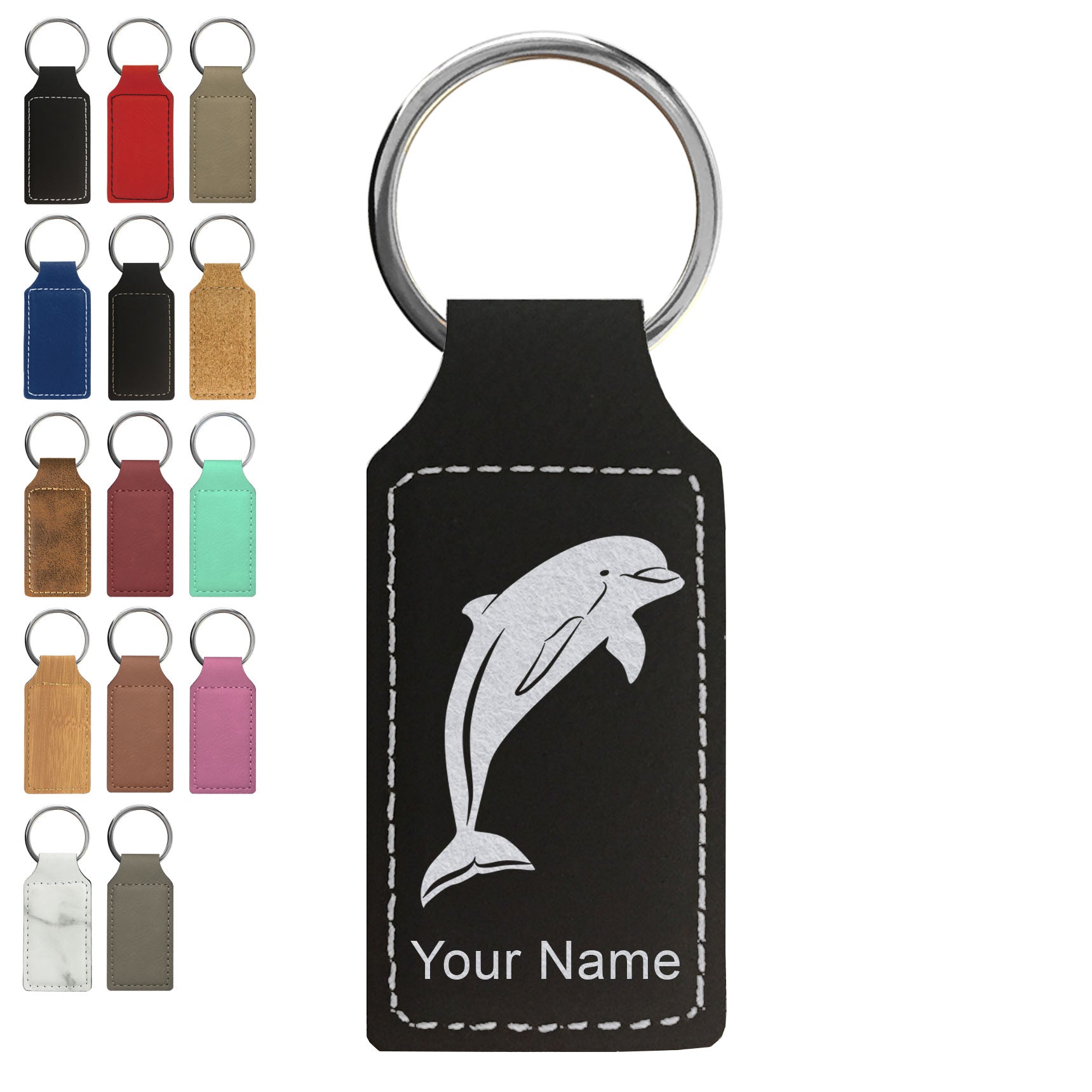 Faux Leather Rectangle Keychain, Dolphin, Personalized Engraving Included