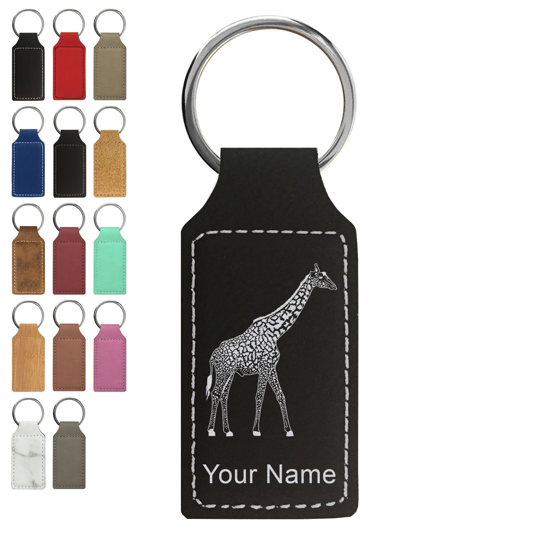 Faux Leather Rectangle Keychain, Giraffe, Personalized Engraving Included