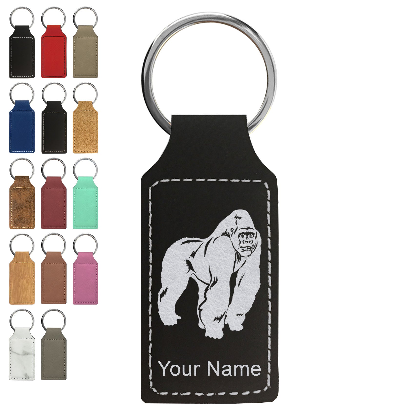 Faux Leather Rectangle Keychain, Gorilla, Personalized Engraving Included