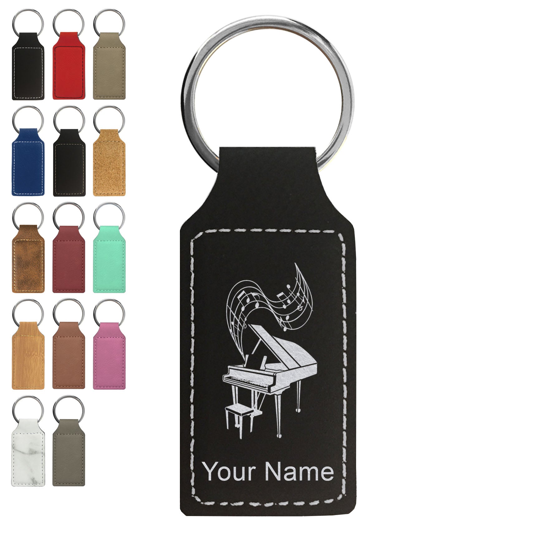Faux Leather Rectangle Keychain, Grand Piano, Personalized Engraving Included