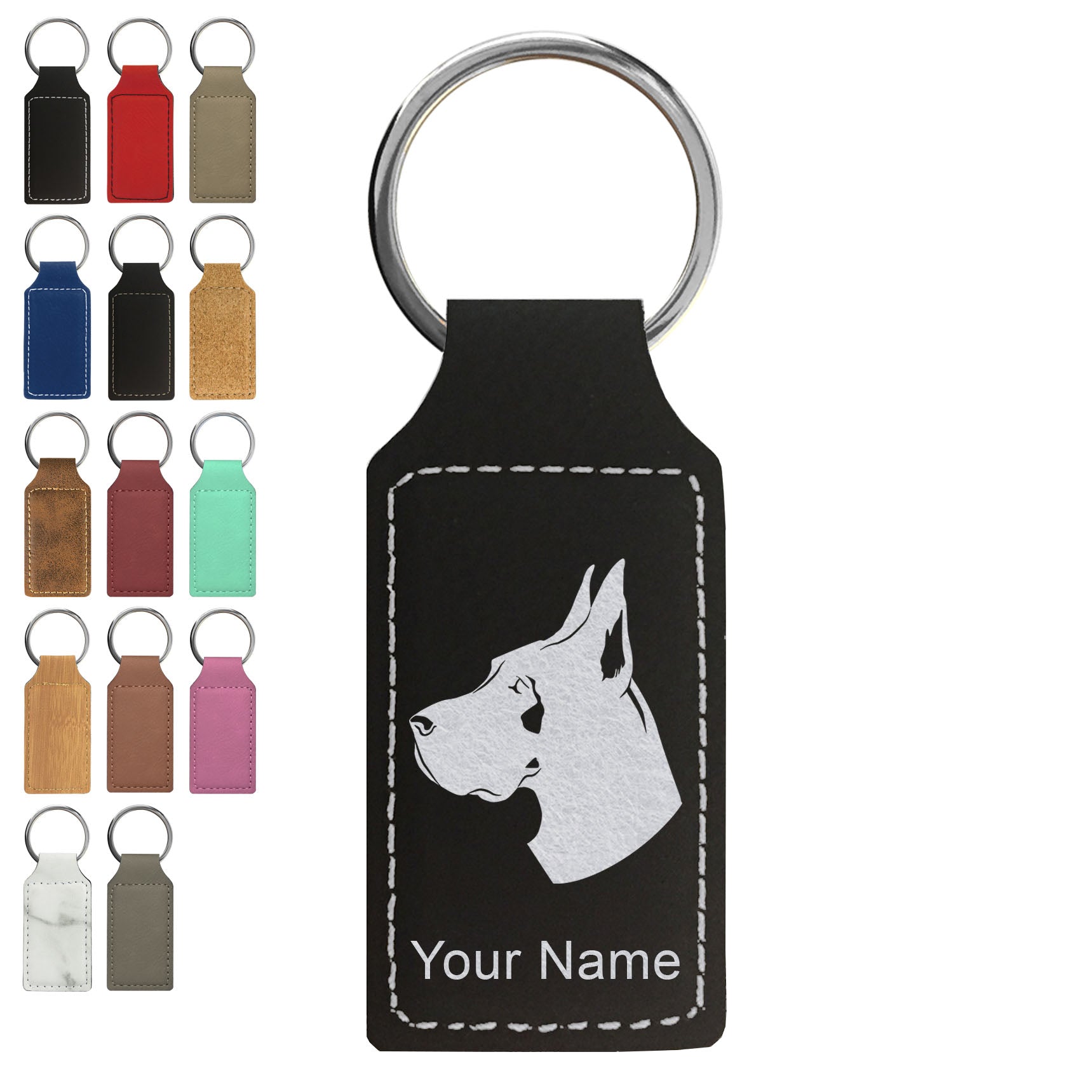 Faux Leather Rectangle Keychain, Great Dane Dog, Personalized Engraving Included