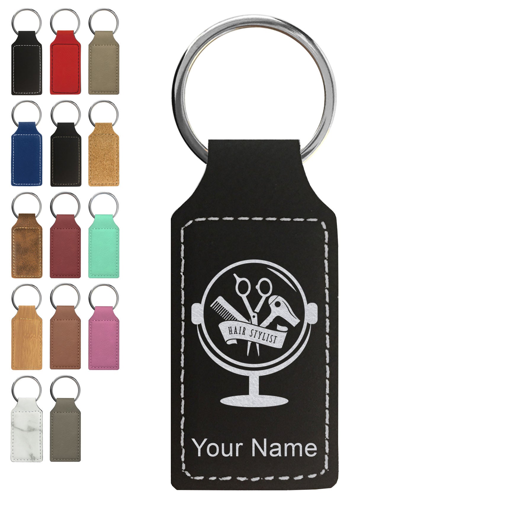 Faux Leather Rectangle Keychain, Hair Stylist, Personalized Engraving Included