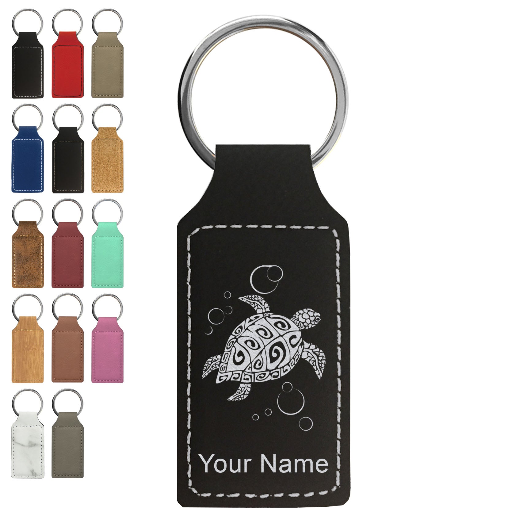 Faux Leather Rectangle Keychain, Hawaiian Sea Turtle, Personalized Engraving Included