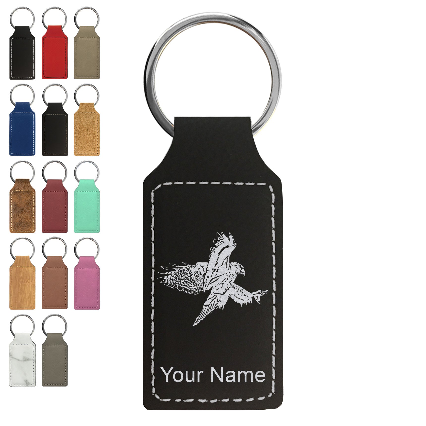 Faux Leather Rectangle Keychain, Hawk, Personalized Engraving Included