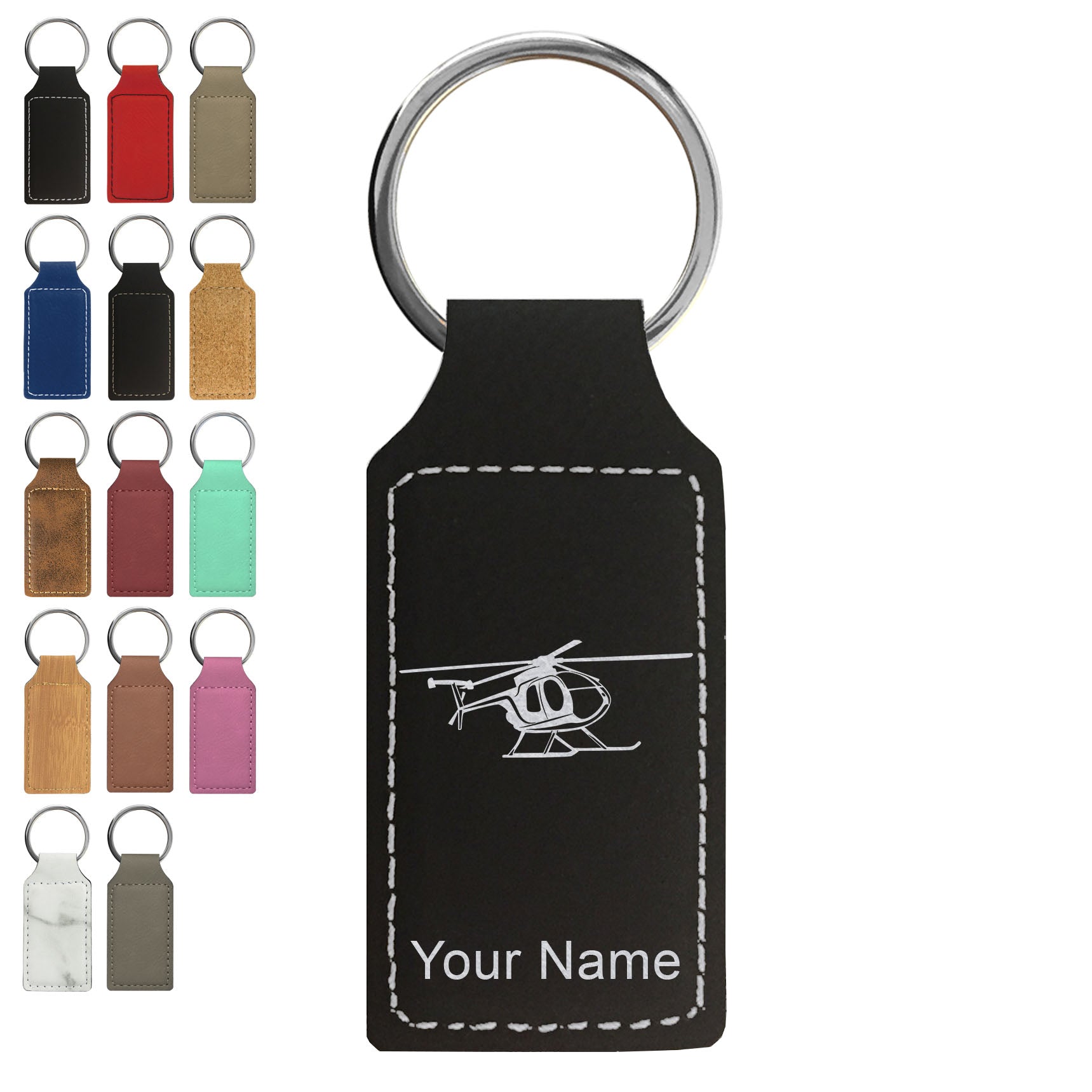 Faux Leather Rectangle Keychain, Helicopter 1, Personalized Engraving Included