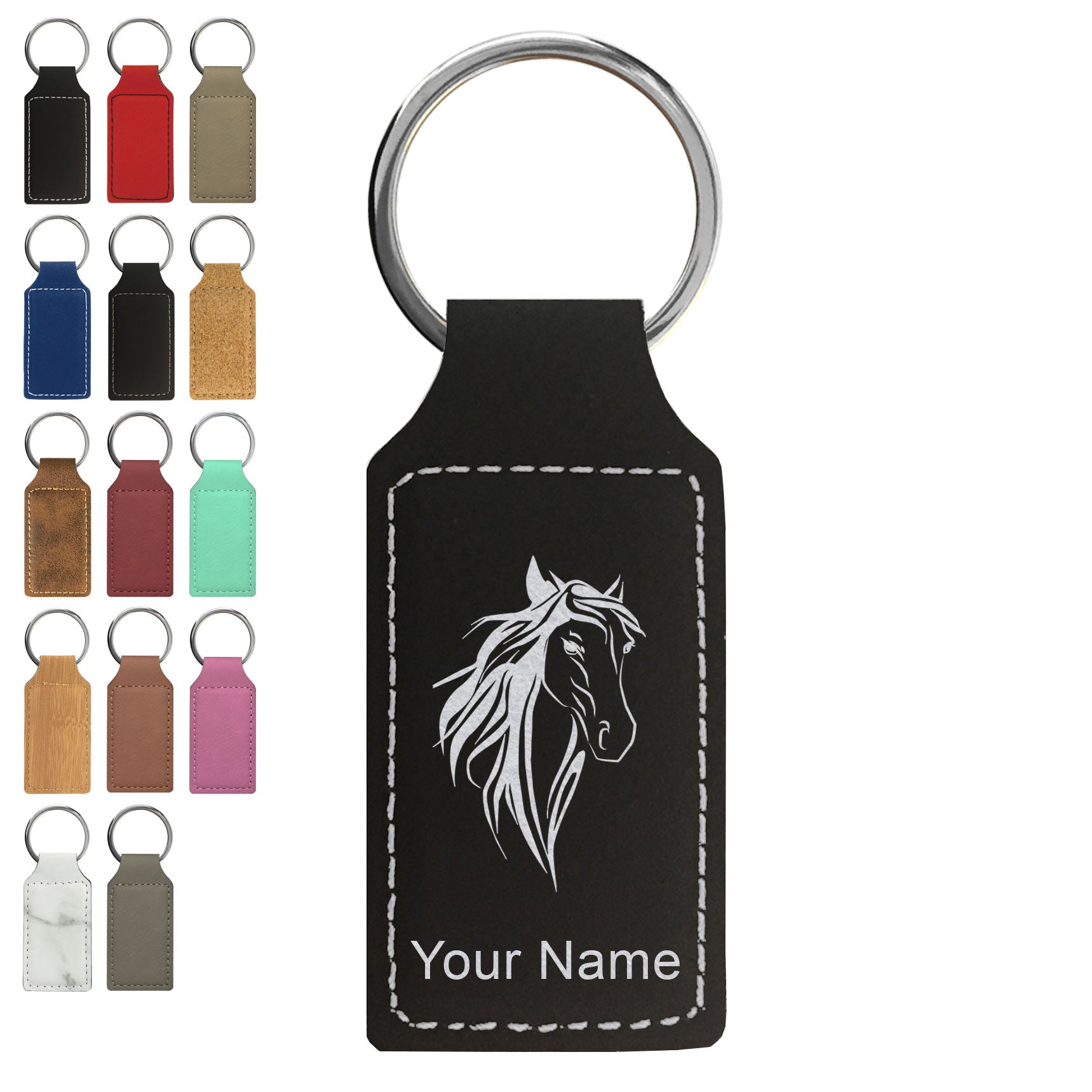 Faux Leather Rectangle Keychain, Horse Head 3, Personalized Engraving Included