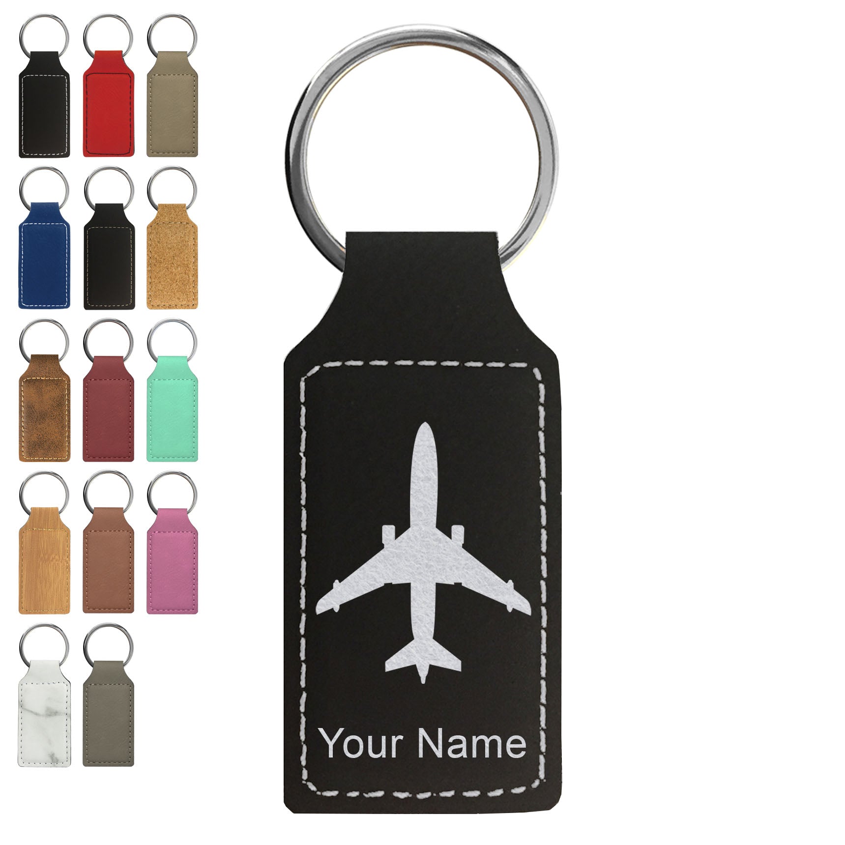 Faux Leather Rectangle Keychain, Jet Airplane, Personalized Engraving Included
