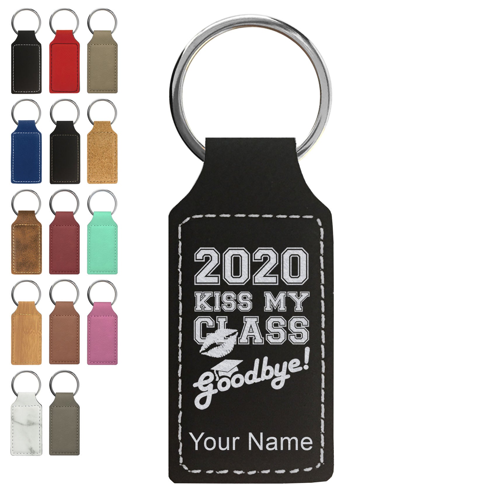 Faux Leather Rectangle Keychain, Kiss My Class Goodbye 2020, 2021, 2022, 2023, 2024, 2025, Personalized Engraving Included
