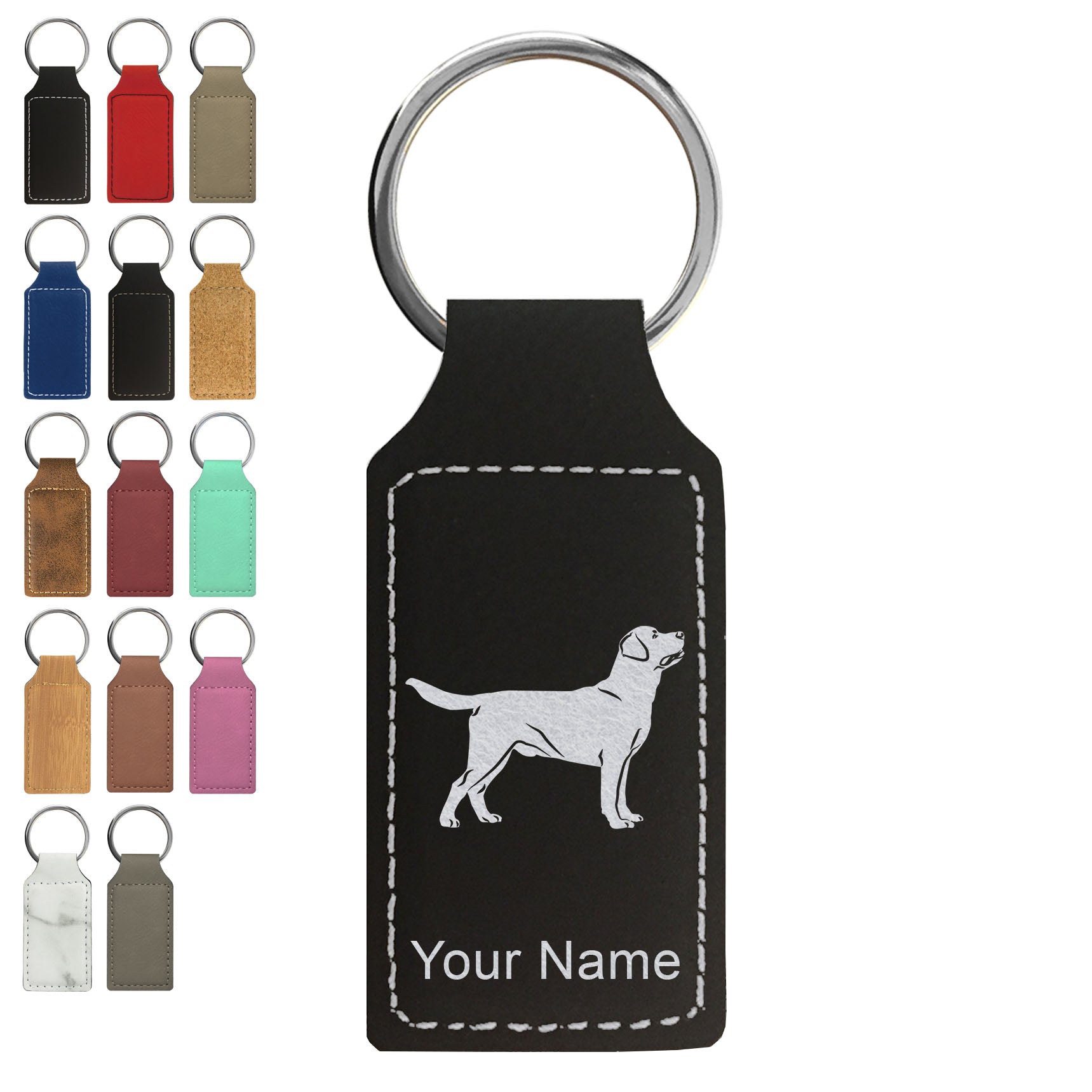 Faux Leather Rectangle Keychain, Labrador Retriever Dog, Personalized Engraving Included