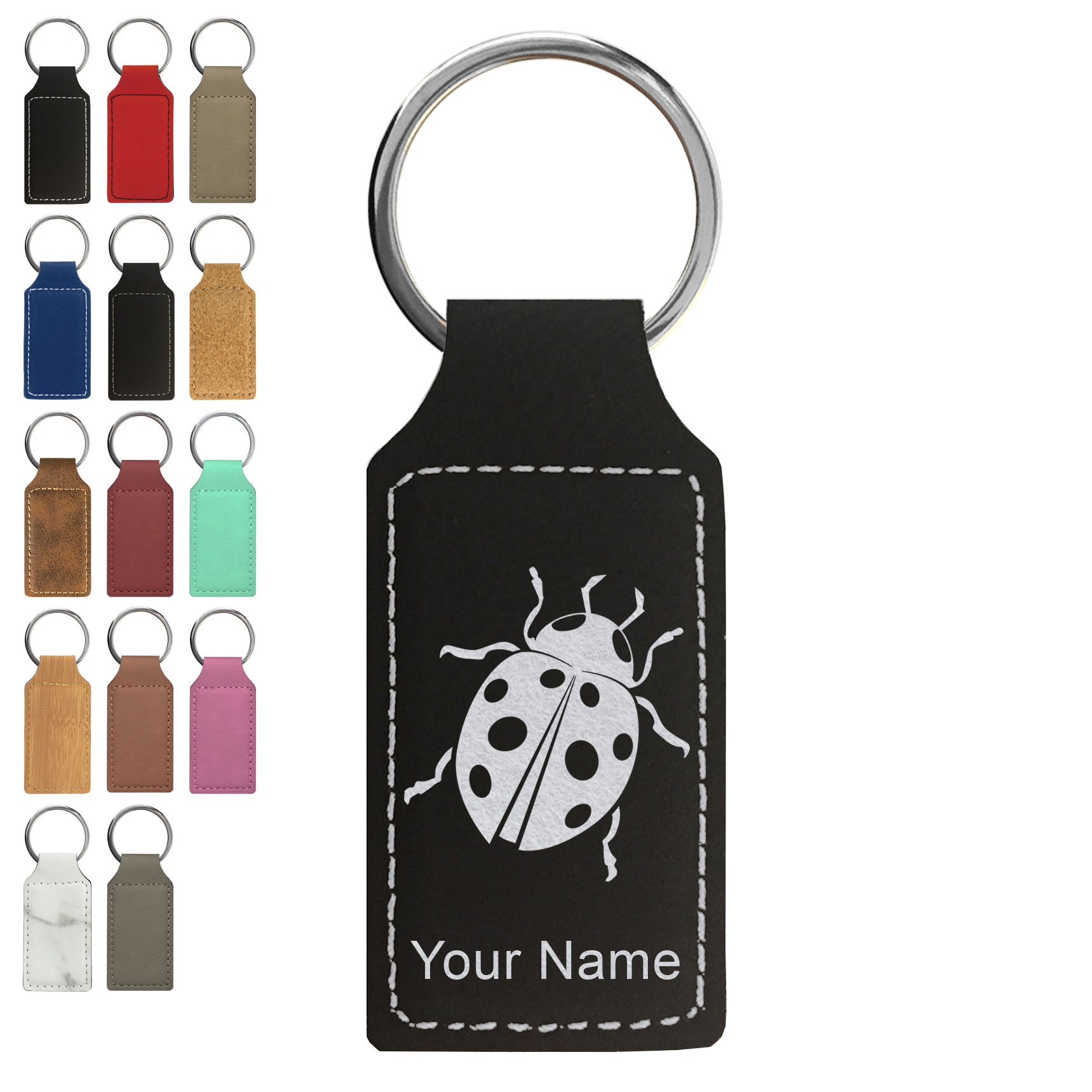 Faux Leather Rectangle Keychain, Ladybug, Personalized Engraving Included