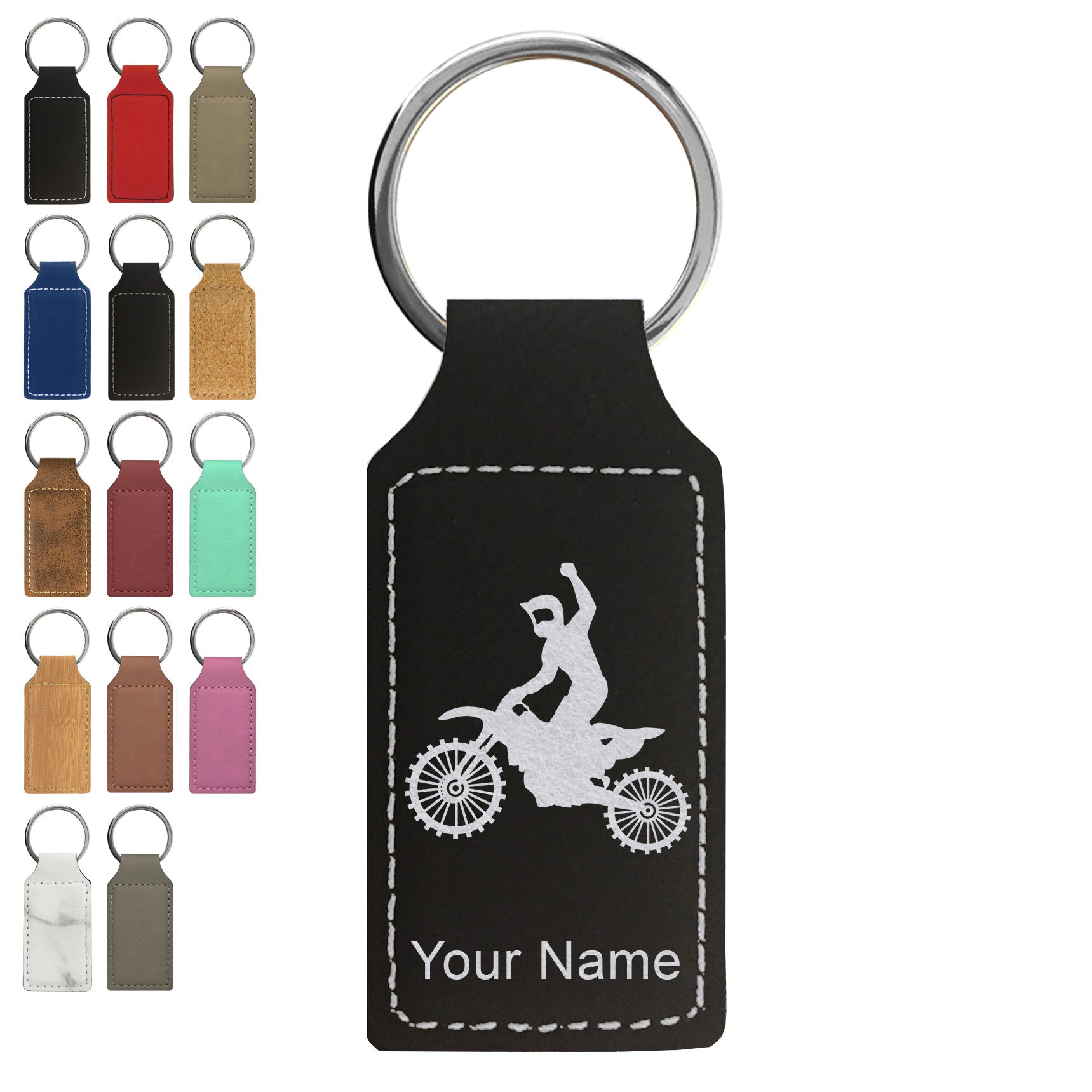 Faux Leather Rectangle Keychain, Motocross, Personalized Engraving Included