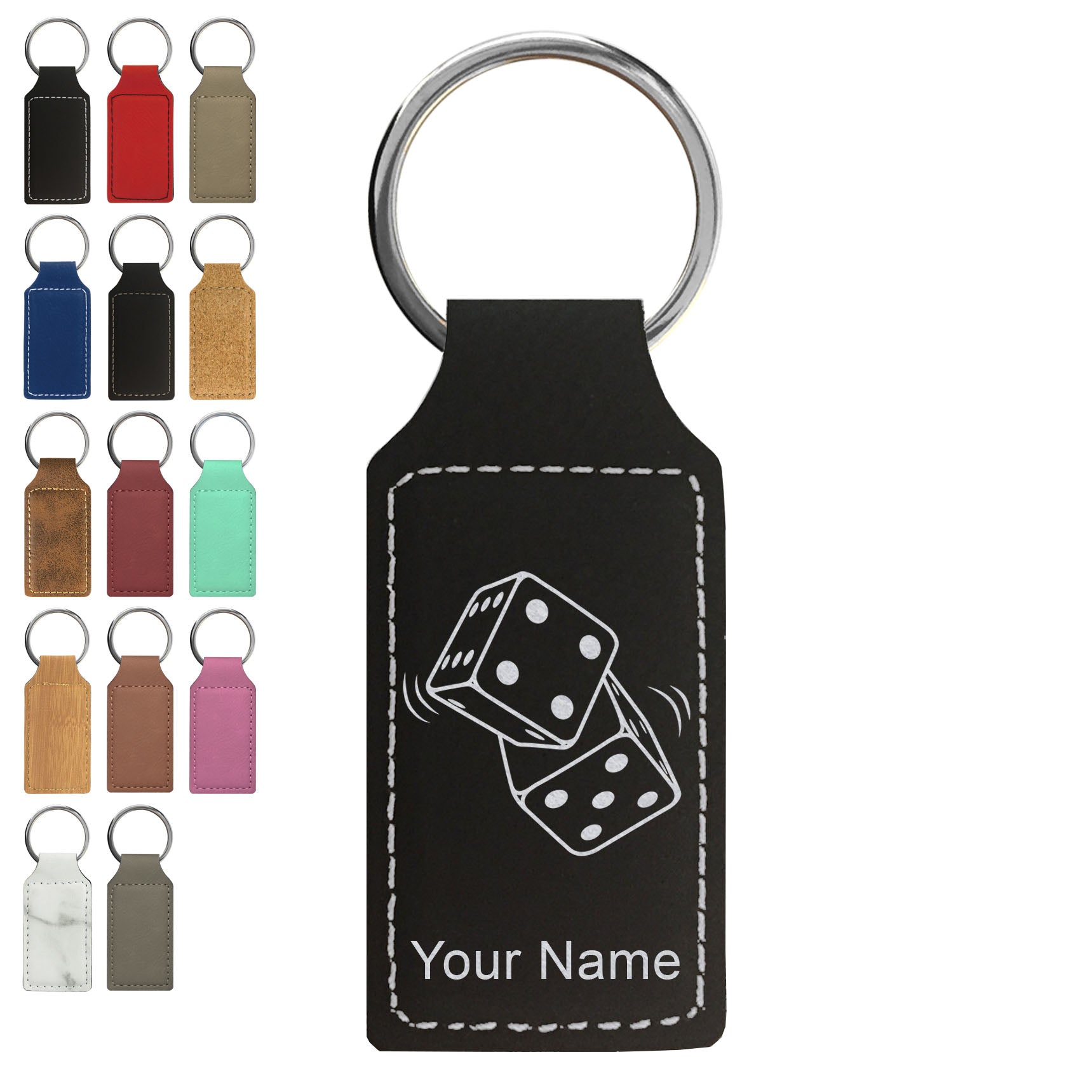 Faux Leather Rectangle Keychain, Pair of Dice, Personalized Engraving Included