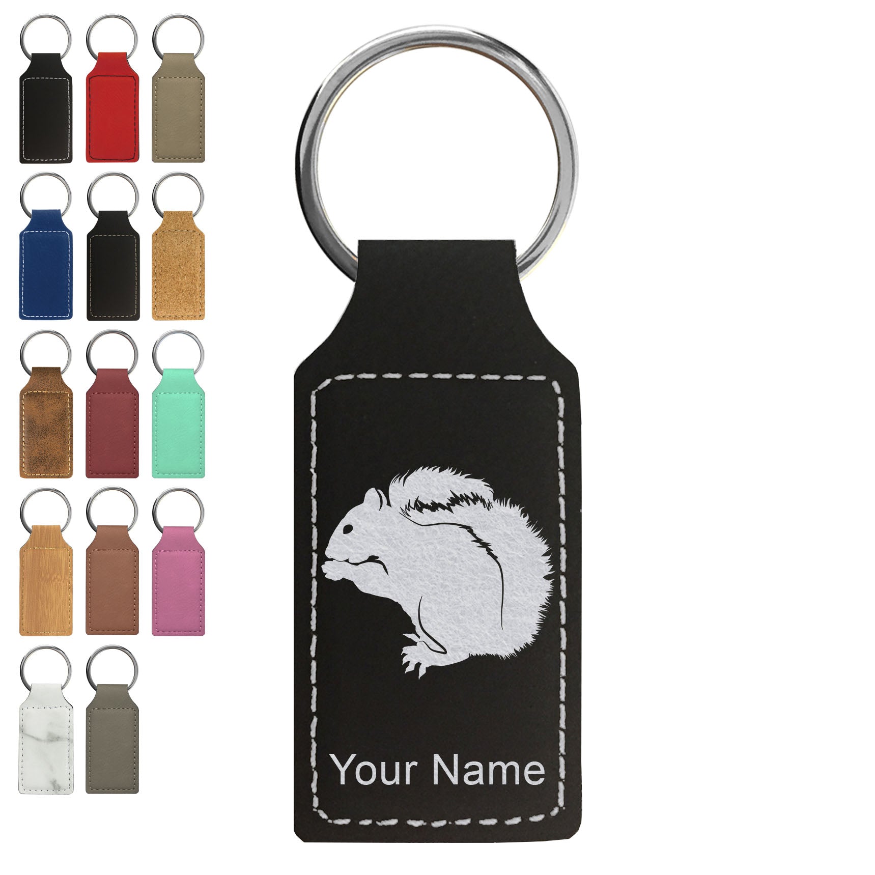 Faux Leather Rectangle Keychain, Squirrel, Personalized Engraving Included