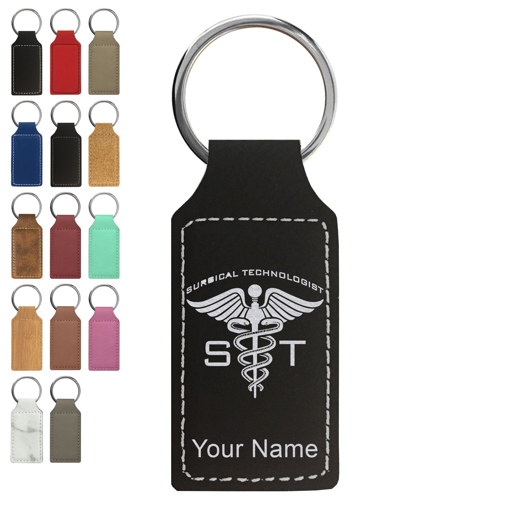 Faux Leather Rectangle Keychain, ST Surgical Technologist, Personalized Engraving Included