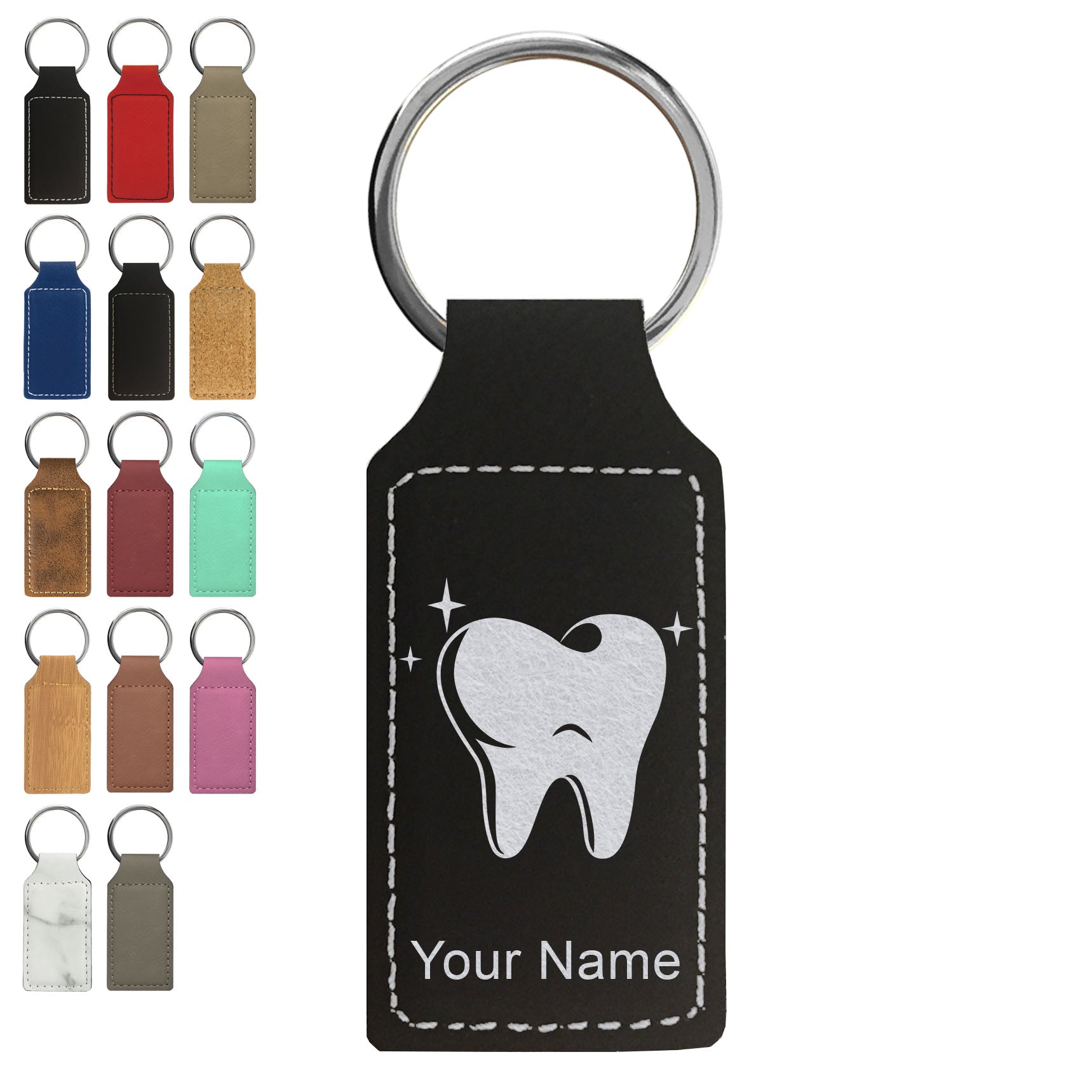 Faux Leather Rectangle Keychain, Tooth, Personalized Engraving Included