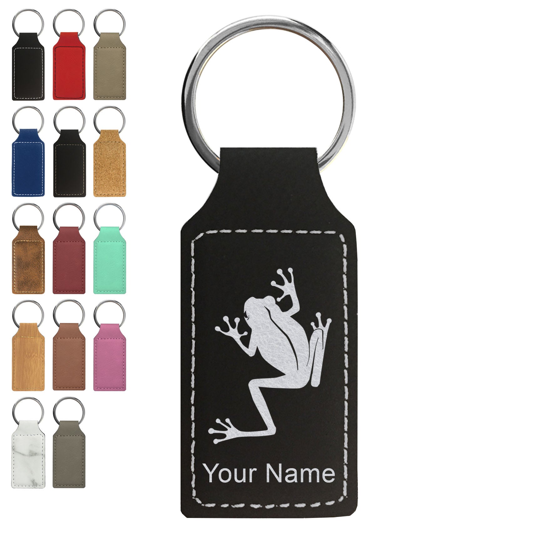 Faux Leather Rectangle Keychain, Tree Frog, Personalized Engraving Included
