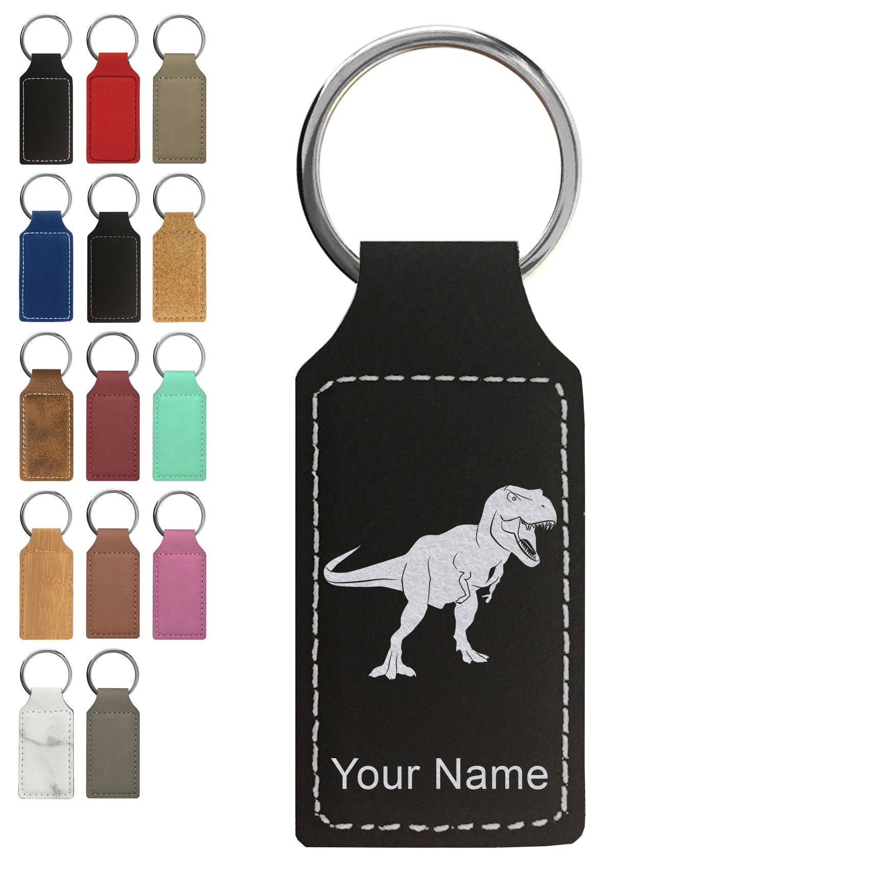 Faux Leather Rectangle Keychain, Tyrannosaurus Rex Dinosaur, Personalized Engraving Included
