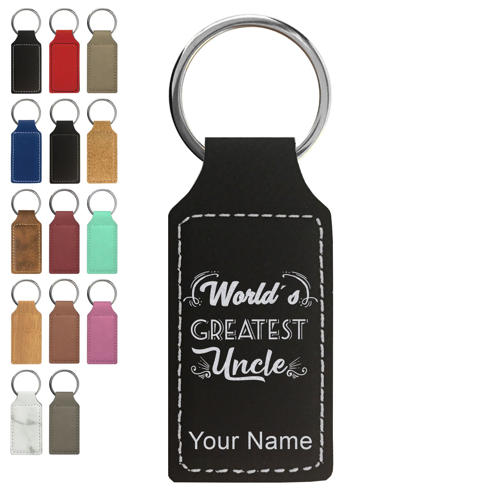 Faux Leather Rectangle Keychain, World's Greatest Uncle, Personalized Engraving Included
