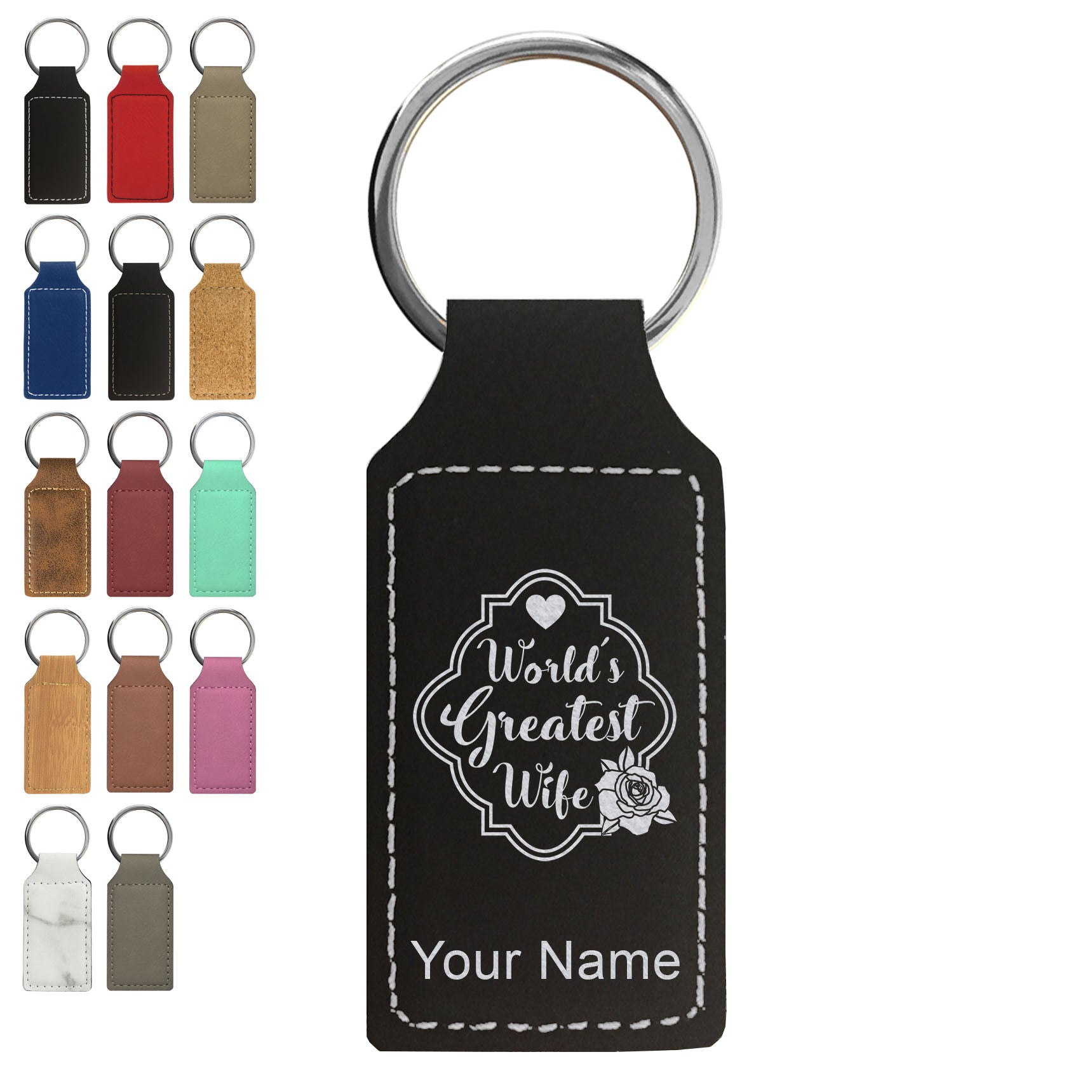 Faux Leather Rectangle Keychain, World's Greatest Wife, Personalized Engraving Included