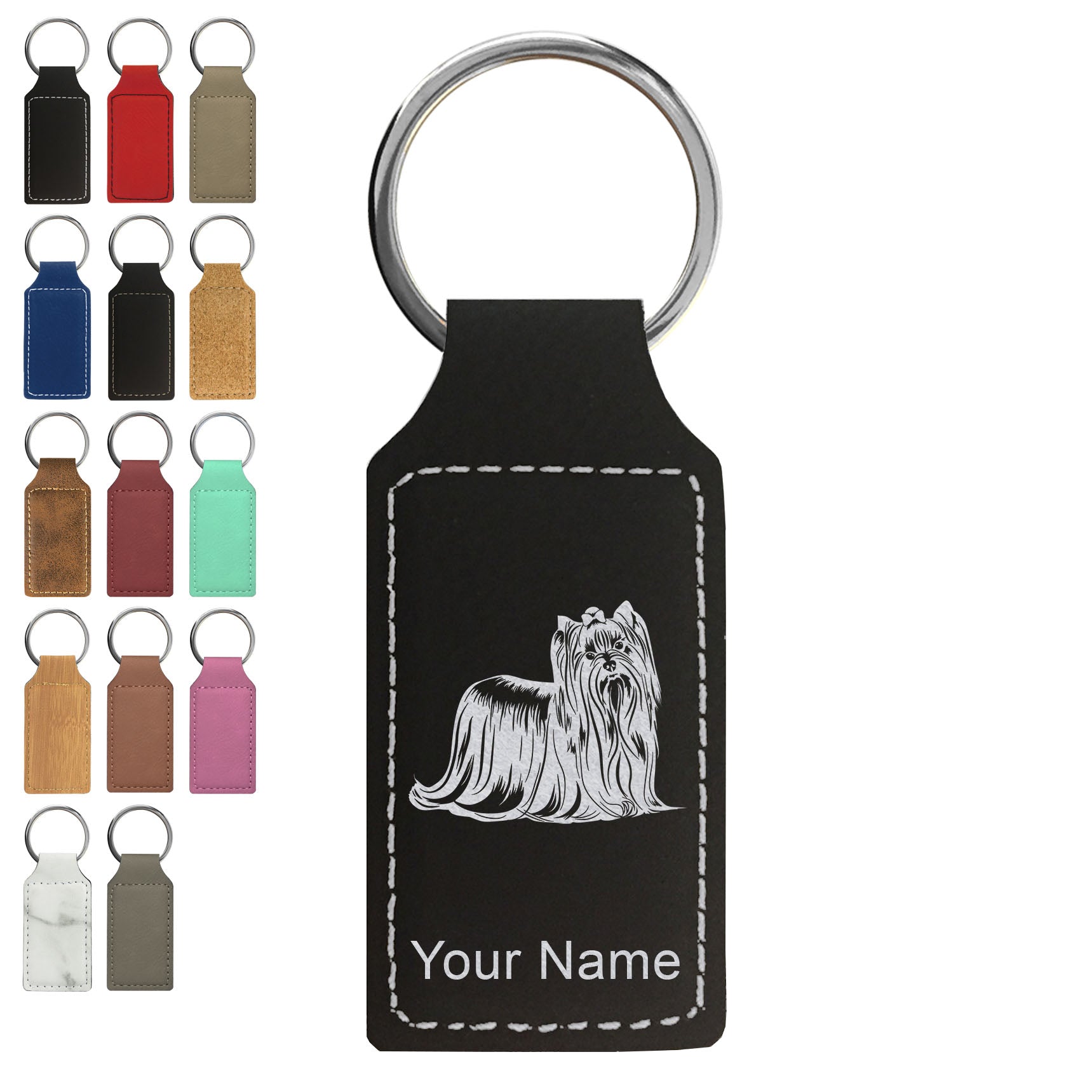 Faux Leather Rectangle Keychain, Yorkshire Terrier Dog, Personalized Engraving Included