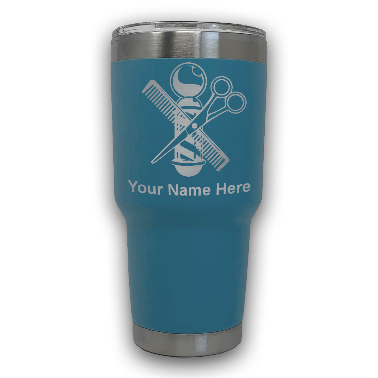 LaserGram 30oz Tumbler Mug, Barber Shop Pole, Personalized Engraving Included