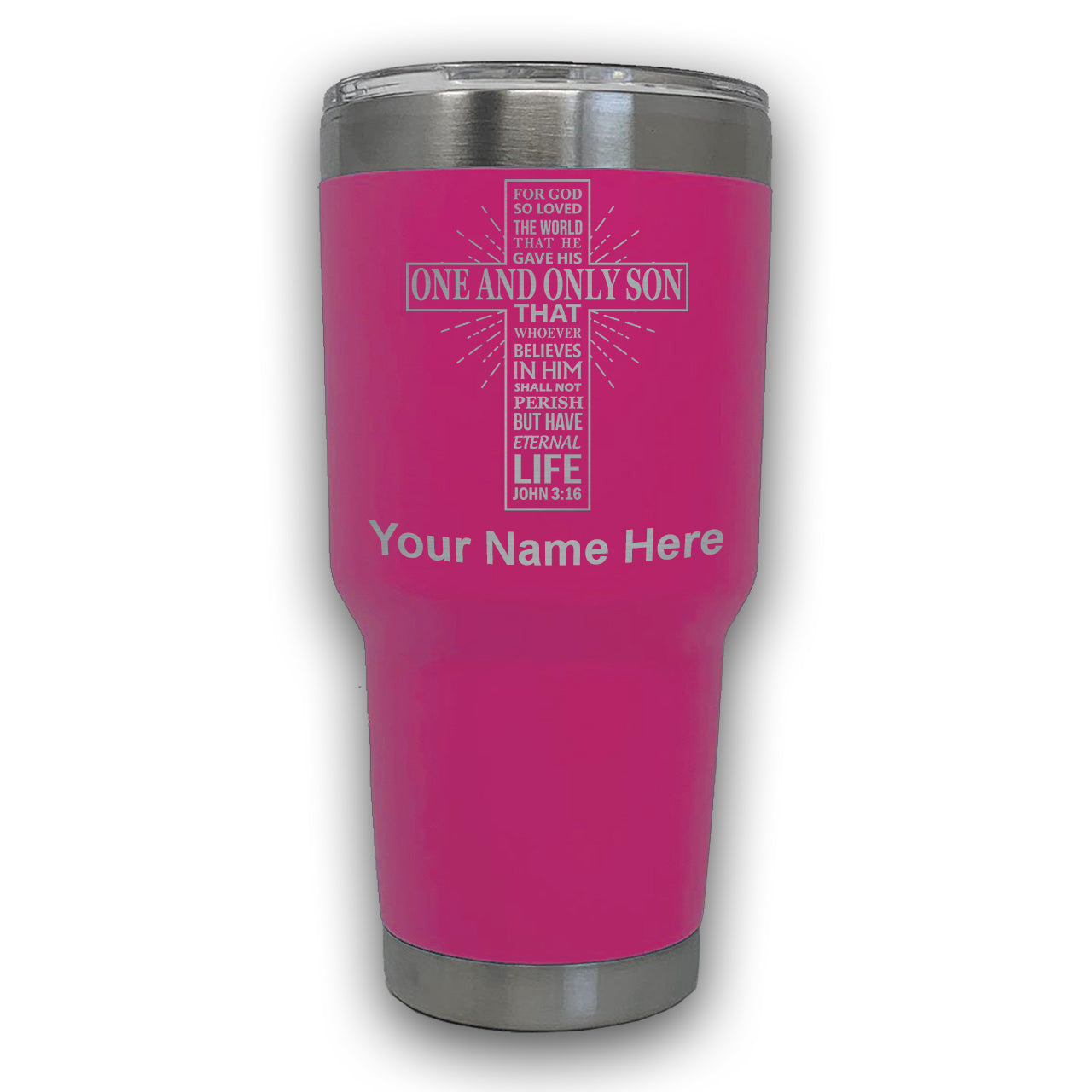 LaserGram 30oz Tumbler Mug, Bible Verse John 3-16, Personalized Engraving Included