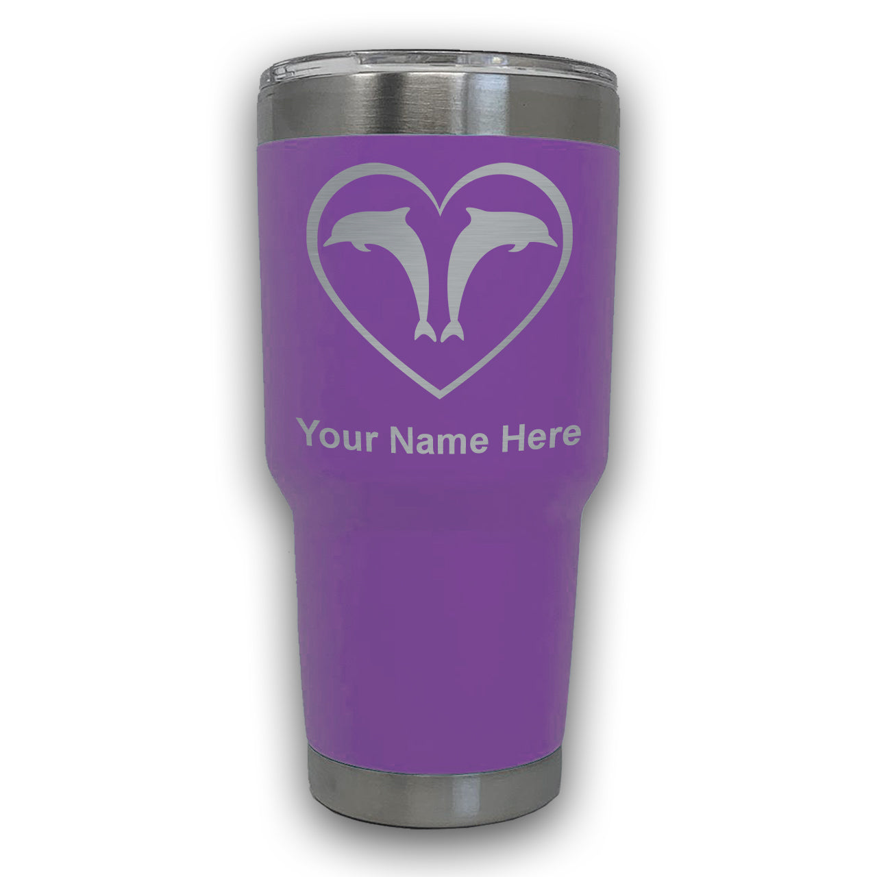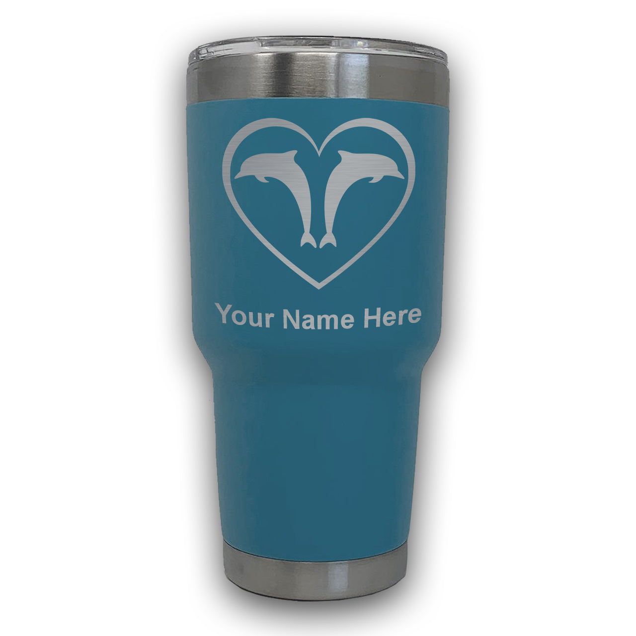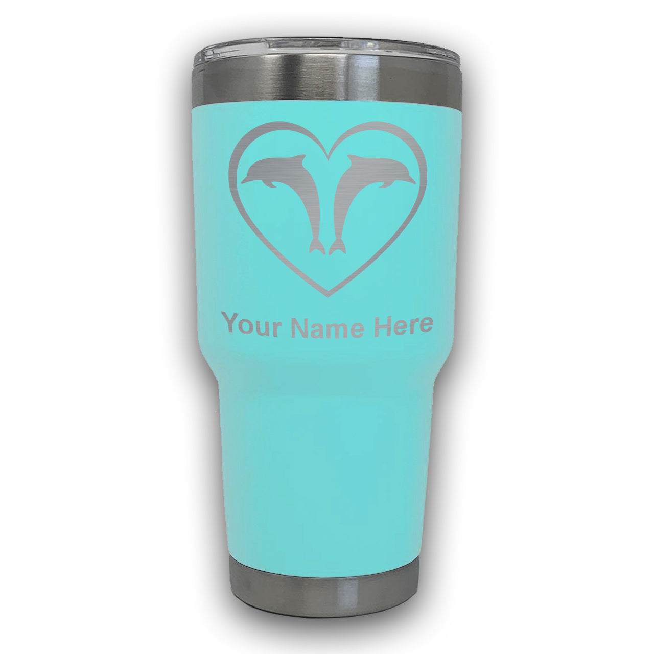 LaserGram 30oz Tumbler Mug, Dolphin Heart, Personalized Engraving Included